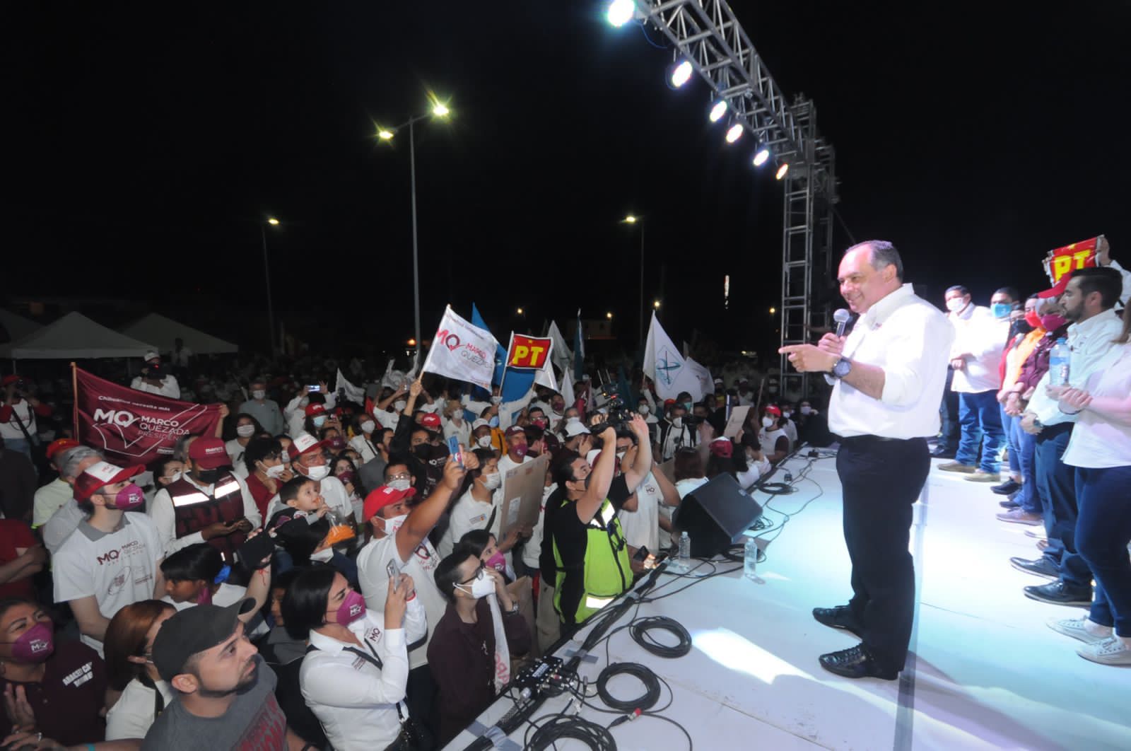 Leer másChihuahua.- Con la asistencia de miles de chihuahuenses que se dieron cita a la colonia Vistas Cerro Grande, el candidato a la presidencia municipal de Chihuahua, por la coalición “Juntos haremos historia”, conformada por los partidos políticos de Morena, PT y Panal, Marco Adán Quezada Martínez, cerró su campaña proselitista invitando a los presentes a votar este próximo domingo. Afirmó que, es muy importante salir a pelear el último round este ...
