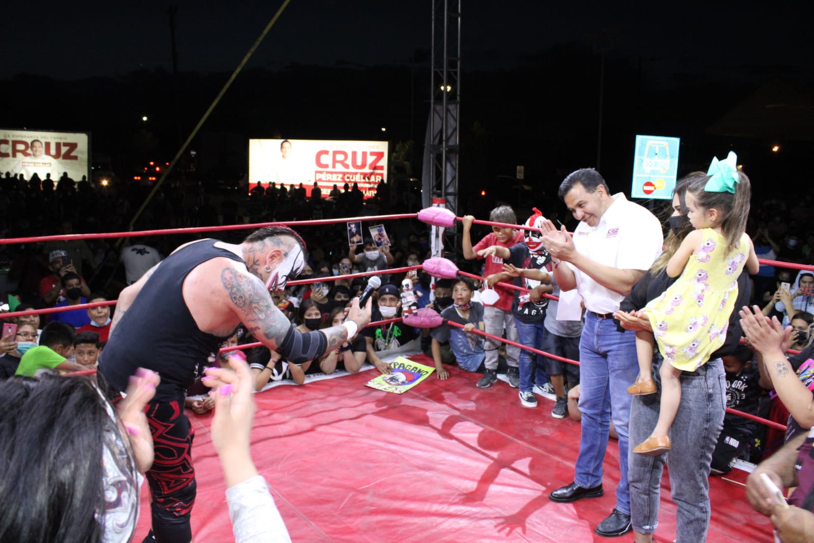 Leer másCiudad Juárez.- En pleno corazón de Ciudad Juárez, en la Gran Plaza de Juan Gabriel, Cruz Pérez Cuèllar, candidato a la alcaldía por Morena en la coalición Juntos Haremos Historia, asistió a la función de lucha libre con El Pagano, legendario luchador juarense que ha mostrado su apoyo al candidato. “Vengo aquí y frente a mi esposa Ruby y mi hija Regina a comprometerme en que vamos a trabajar mucho por ...