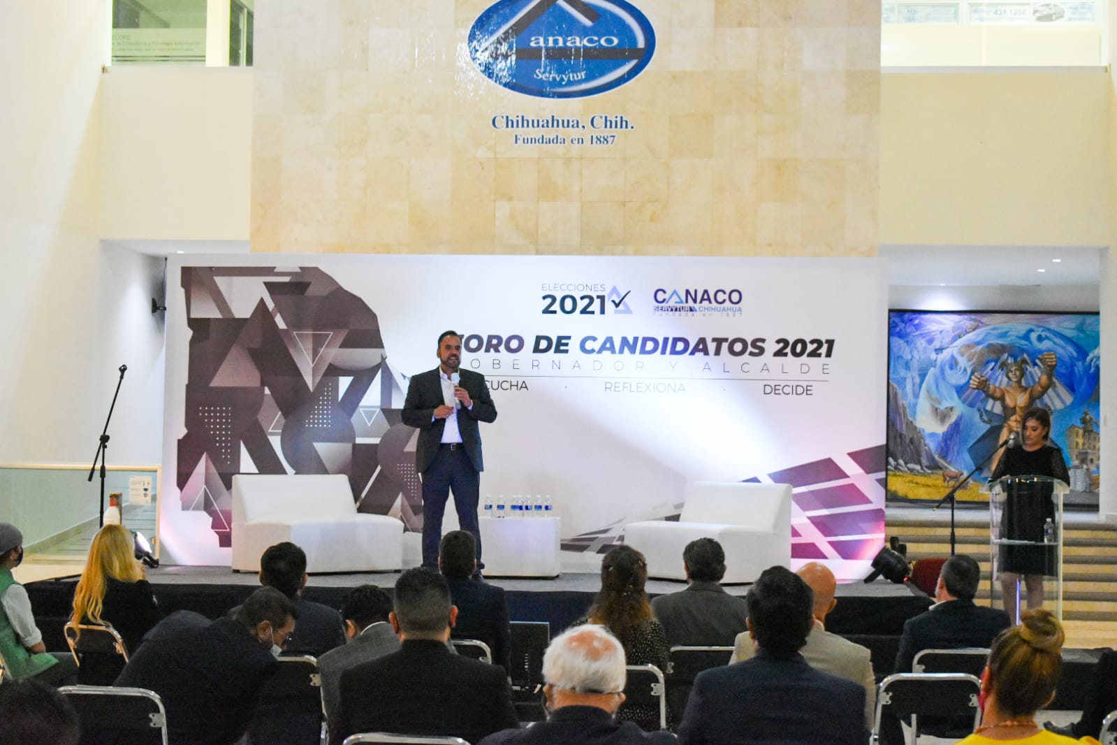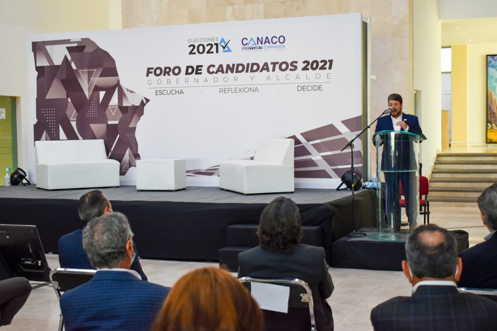 Leer másChihuahua.- La Cámara Nacional del Comercio en Chihuahua (Canaco), efectuó la primera reunión entre candidatos a la gubernatura del Estado en su "Foro de Candidatos 2021", ejercicio en el que se le permitió a los aspirantes hacer una auto-presentación, dar a conocer sus propuestas y dar respuesta a cuestiones presentadas por los integrantes de la Cámara. Cada uno de los candidatos participantes tuvo un tiempo máximo de 15 minutos; dos minutos ...