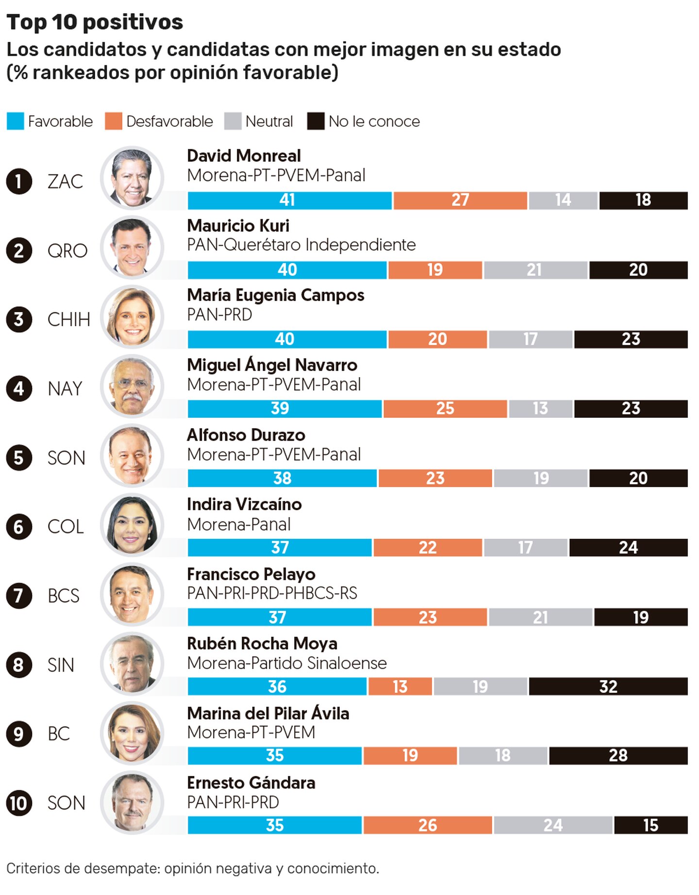 Leer másMéxico.- De acuerdo con una encuesta nacional, Maru Campos se coloca en el tercer lugar del ranking de candidaturas a los gobiernos estatales con mayor número de opiniones positivas de la ciudadanía. El sondeo realizado por El Financiero, arroja que el morenista David Monreal, quien busca la gubernatura de Zacatecas, es el que tiene más opiniones positivas, con 41 por ciento. Le siguen el panista Mauricio Kuri, de Querétaro, y Maru ...