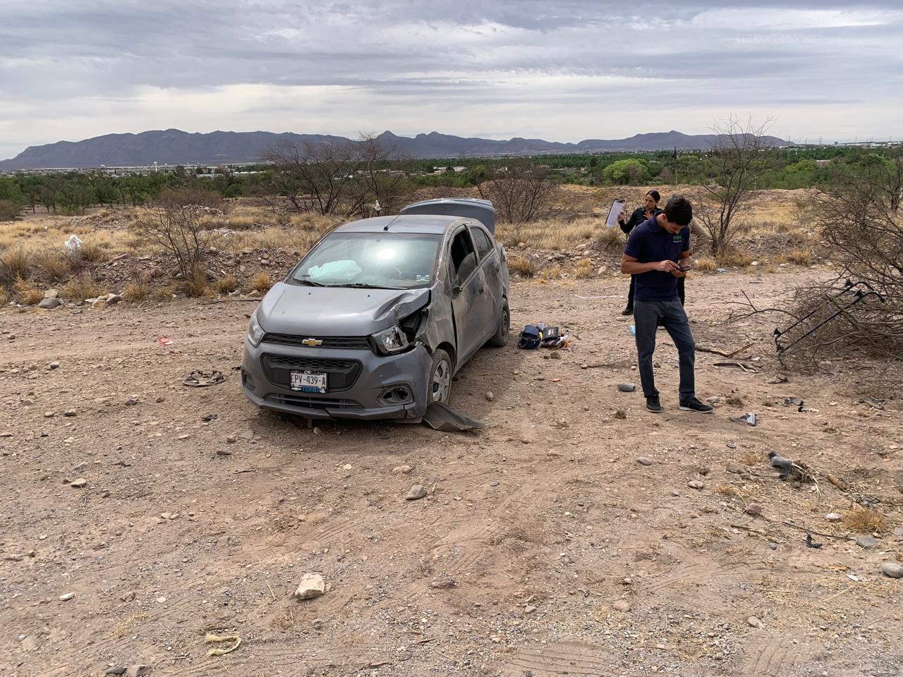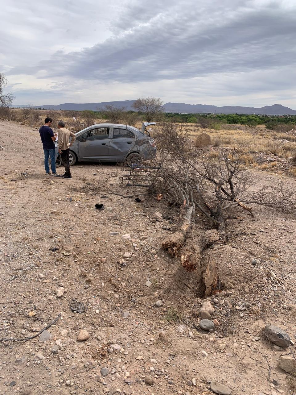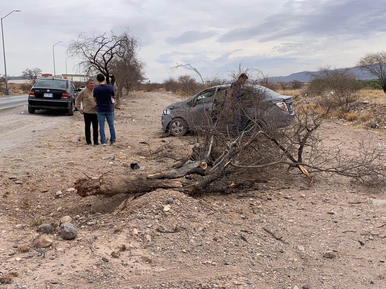 Chihuahua.- Un aparatoso choque contra un huizache y posteriormente una volcadura ocurrió en el kilómetro 3.5 de la carretera Chihuahua a Aldama, la mañana de este jueves.