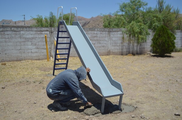 En el primero de ellos, se colocó un arco con dos columpios, un resbaladero, una araña, así como dos sube y bajas y dos ejercitadores, mientras que, en el segundo, se instaló otro arco de columpios, un sube y baja y tres ejercitadores.