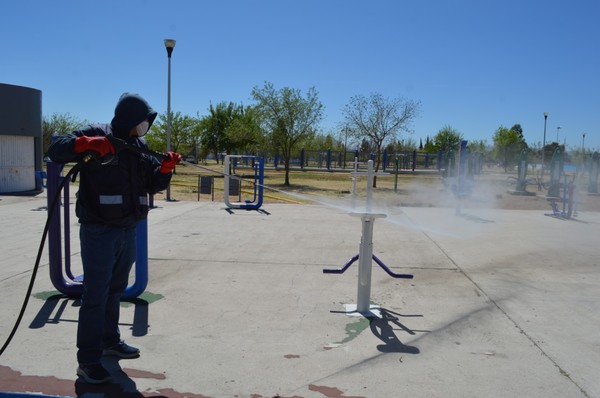 El Gobierno Municipal a través de la Dirección de Mantenimiento Urbano, comenzó con la limpieza y desinfección con agua, jabón y cloro de los principales parques y plazas de la ciudad.