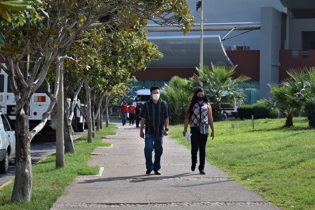 Actualmente para ingresar en auto y estacionarse en este punto se entra por la entrada sur, por Museo Casa Redonda. Incluso camiones de maquiladoras estuvieron accediendo a este punto llevando a decenas de sus empleados a inocularse contra el COVID 19.