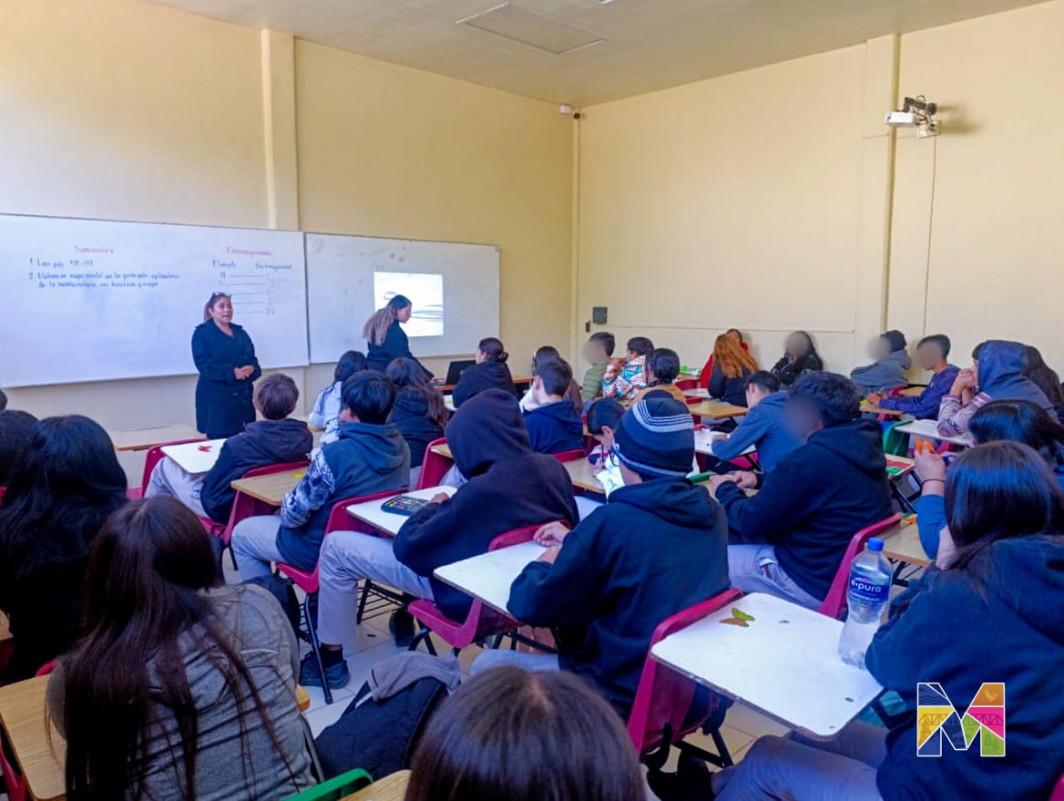 Meoqui.- La Instancia Municipal de Atención a la Mujer de Meoqui, impartió una plática sobre violencia en el noviazgo a todas y todos los estudiantes del Colegio de Bachilleres Plantel 28, con el objetivo de prevenir conductas violentas y promover relaciones sanas entre adolescentes.