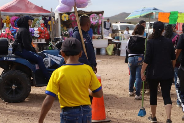 La Policía Montada, el Escuadrón Motociclista, cadetes y otros grupos especiales apoyados por el Centro de Mando Móvil (C4) y remolques de mástil con cámaras, fueron los encargados de realizar rondines de vigilancia en los cementerios municipales, algunos privados y en la Feria del Hueso, donde el flujo de gente y de vendedores ambulantes así lo requiere.