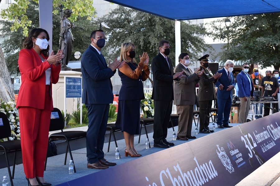 “Chihuahuenses que, con su trabajo, esfuerzo y convicción, hacen de esta tierra una tierra prospera y un honor para nuestro querido país. En Chihuahua trabajamos, no por la vanidad, sino para ofrecer a nuestra familia la posibilidad de vivir bien y felices” externó por su parte la gobernadora Maru Campos, primera mujer en la historia de la ciudad (312 años) en acceder a la alcaldía y primera en el estado en hacerse de la gubernatura, quien con su discurso cerró el evento de conmemoración.