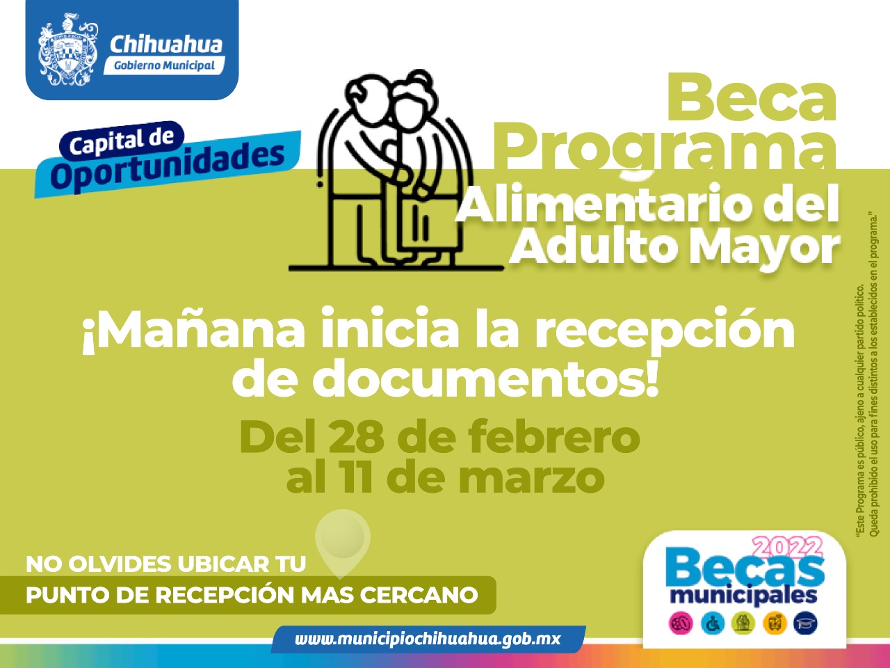 Chihuahua.- Con el objetivo de colaborar para mejorar las condiciones de vida, la calidad de la dieta e impulsar el desarrollo de los adultos mayores de la ciudad de Chihuahua, el Gobierno Municipal, a través del DIF, convoca a las personas mayores de 60 años y en situación de vulnerabilidad económica al Programa Alimentario para el Adulto Mayor 2022.