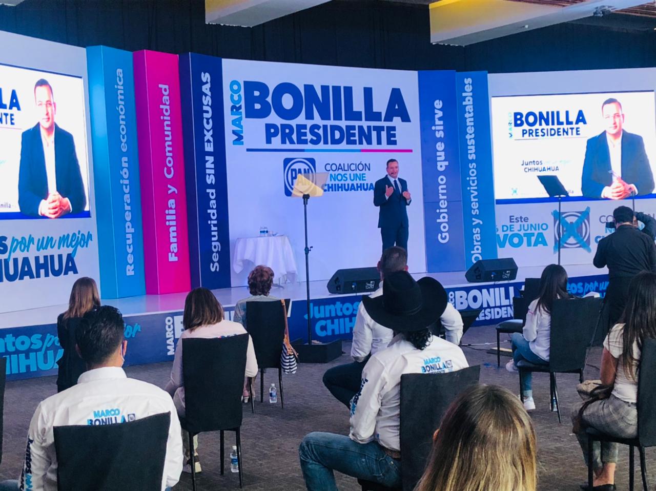 Durante un evento de presentación que se realizó de manera simultánea, presencial y virtualmente, Bonilla aseguró que la ciudadanía podrá ser beneficiada de gran forma, con resultados similares a los obtenidos los últimos cinco años con Maru Campos en la presidencia, y él como director de Desarrollo Humano y Educación, y como alcalde en 2017; “fui un alcalde que escuchó y seré un alcalde que escuche, que se deje asesorar por los mejores para poder consolidar juntos la creación del mejor municipio de México”.