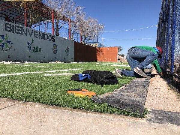 Como parte de la Alianza por la Infraestructura Educativa, el Gobierno Municipal de Chihuahua mantiene un avance del 85 por ciento en la construcción de una cancha de pasto sintético y un muro de contención en la primaria Ley de Asentamientos Humanos, ubicada en la colonia Diaz Ordaz, al sur de la ciudad.