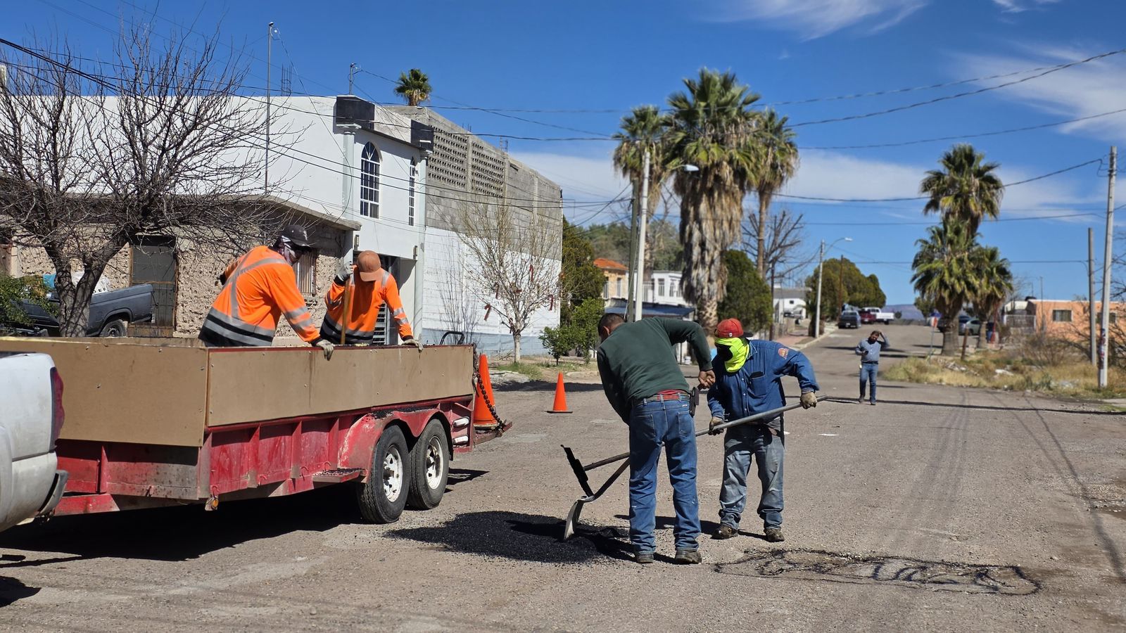 Camargo.- El Gobierno Municipal continúa trabajando en el mejoramiento de las vialidades a través del programa permanente de bacheo, atendiendo este miércoles diversos puntos específicos de la ciudad que habían sido reportados por la ciudadanía.