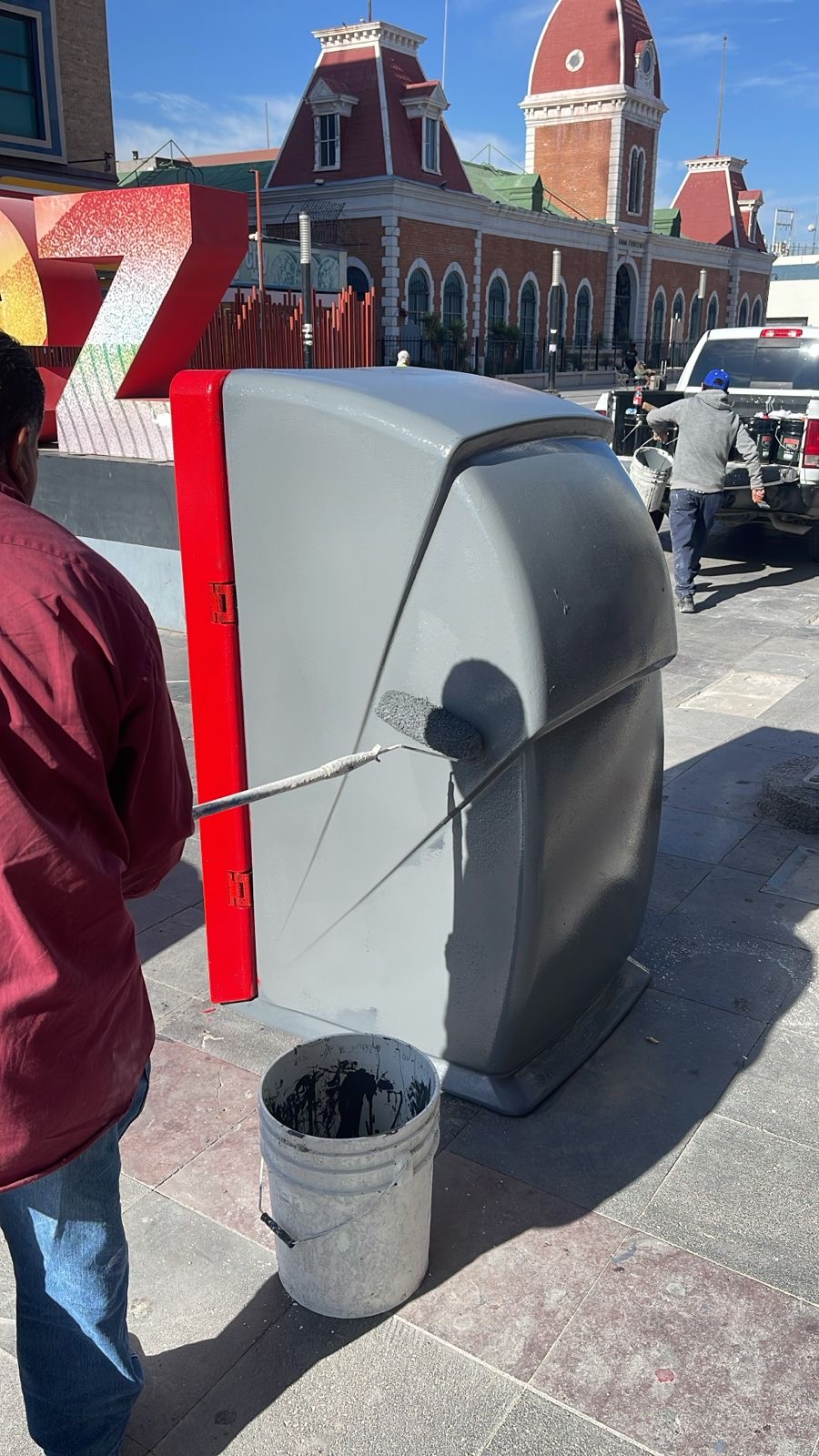 El titular de la dependencia, Gibran Solís Kanahan, informó que se llevan a cabo trabajos de pintado en los contenedores de basura ubicados sobre la avenida Juárez, así como labores de remozamiento en las letras monumentales de “Juárez”, particularmente en la parte posterior, con el objetivo de mantenerlas en buen estado para quienes visitan este punto emblemático.