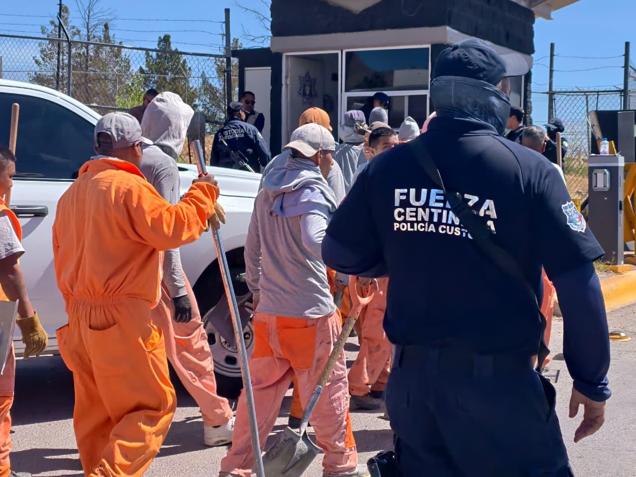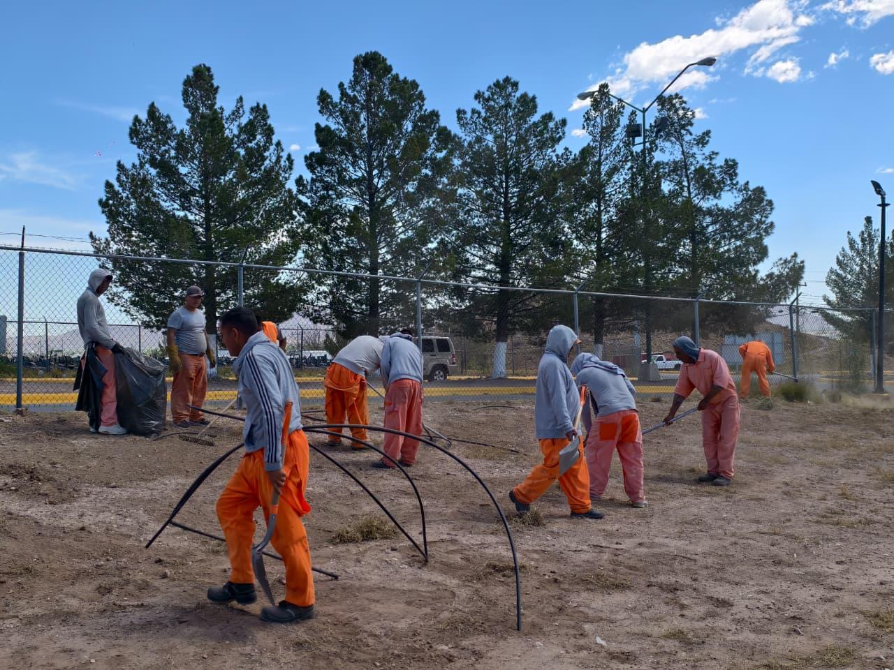 Chihuahua.- Como parte de los esfuerzos de reinserción social implementados por la Secretaría de Seguridad Pública del Estado (SSPE), a través del Sistema Penitenciario, se llevó a cabo la participación de 20 personas privadas de la libertad (PPL) del CERESO No. 1 en labores de mantenimiento dentro de las instalaciones del Complejo Estatal de Seguridad Pública.