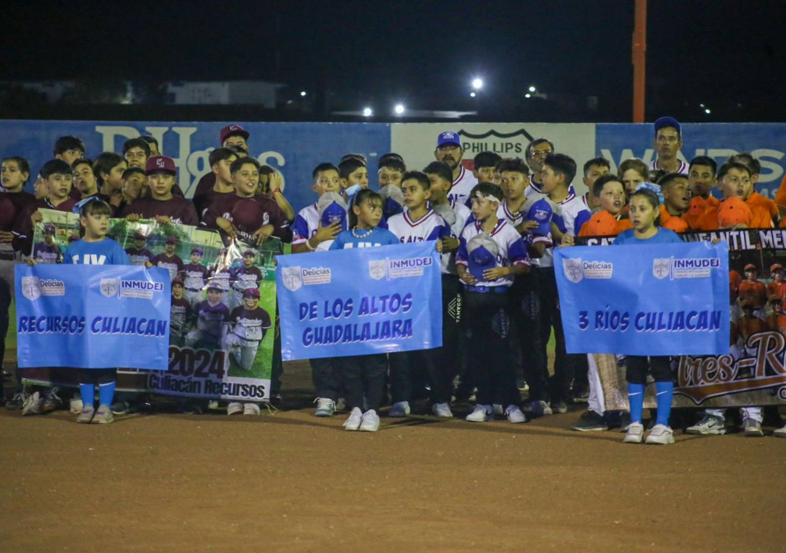 Delicias.- El Campeonato Nacional de la Asociación de Ligas infantiles y juveniles de la República Mexicana de Béisbol 11-12 años inició con un evento espectacular en los campos de la unidad deportiva Fernando Baeza. La inauguración contó con la presentación de los equipos y un impresionante espectáculo de fuegos artificiales que iluminó el cielo, encantando a los pequeños jugadores y sus familias.