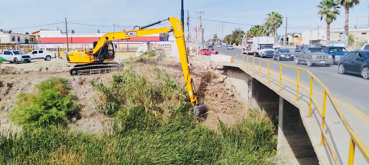 Delicias, Chih.- Derivado de la petición realizada por CONAGUA, elementos de la asociación civil de usuarios, se están realizando trabajos de limpiezas en los drenes, iniciando por la laguna seca que se encuentra en la avenida Fernando Baeza oriente a un costado del denominado puente de Cielo Vista.