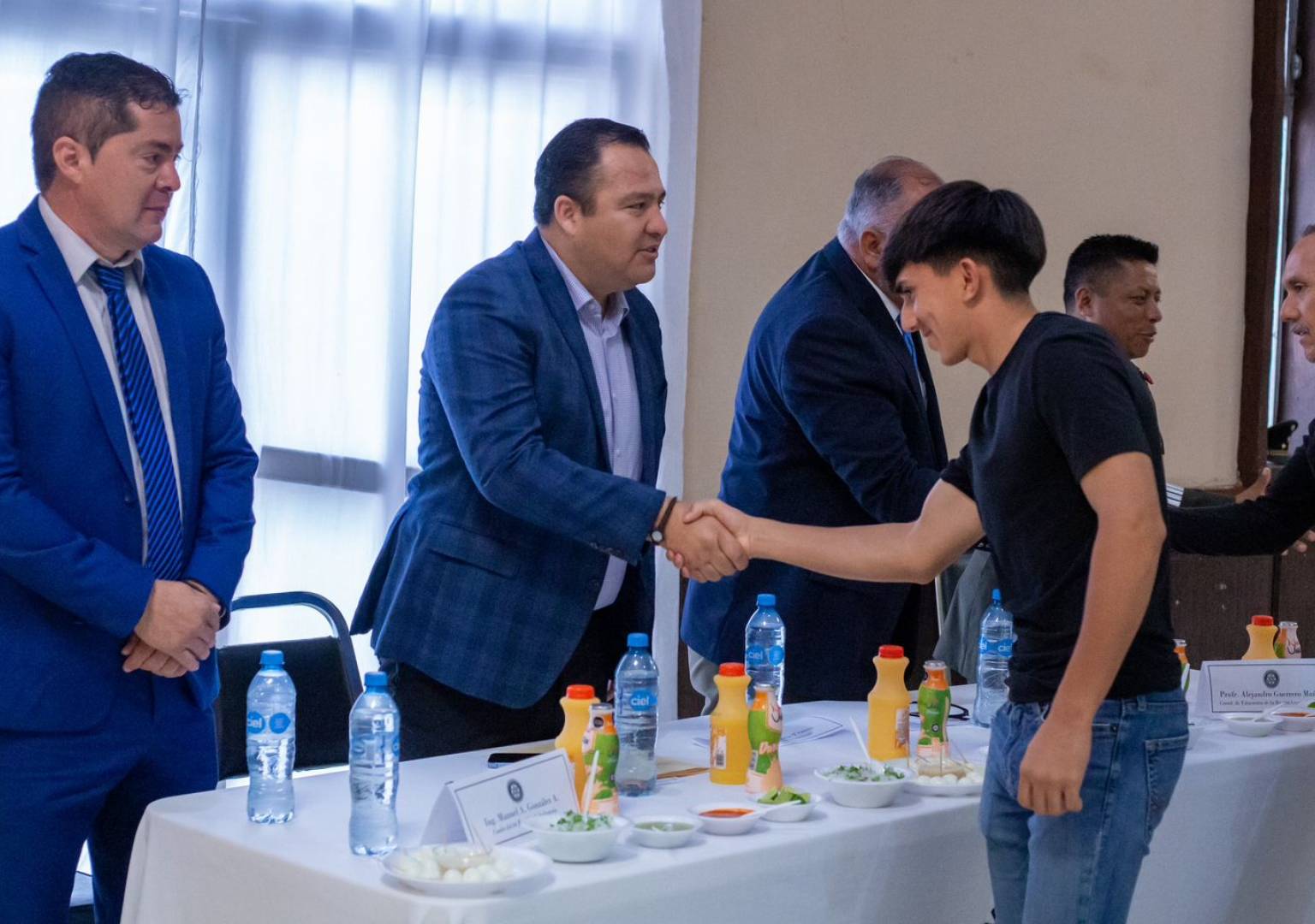 Finalmente pidió a los presentes que se pusieran de pie para que pudieran brindarle un aplauso a los jóvenes estudiante de escuelas como: el Tecnológico de Delicias, Colegio Nacional de Educación Profesional Técnica del Estado, Universidad Vizcaya,CEUN, CETis 87, CEBACH 6/4, Prepa 20-30, FCA, FCAyF, Secundarias 3014, ES100, Leyes de reforma, Colegio La Paz y Colegio la roca, por mencionar algunos.