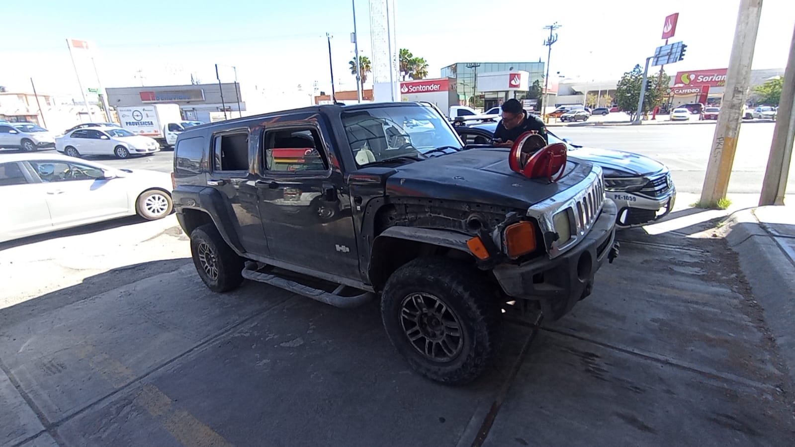 Tras varios intentos por liberar la camioneta de la banqueta, escapó del lugar, pero fue alcanzada por agentes de la Policía Vial, quienes procedieron a detenerla y asegurar la camioneta, ya que no contaba con placas ni seguro.