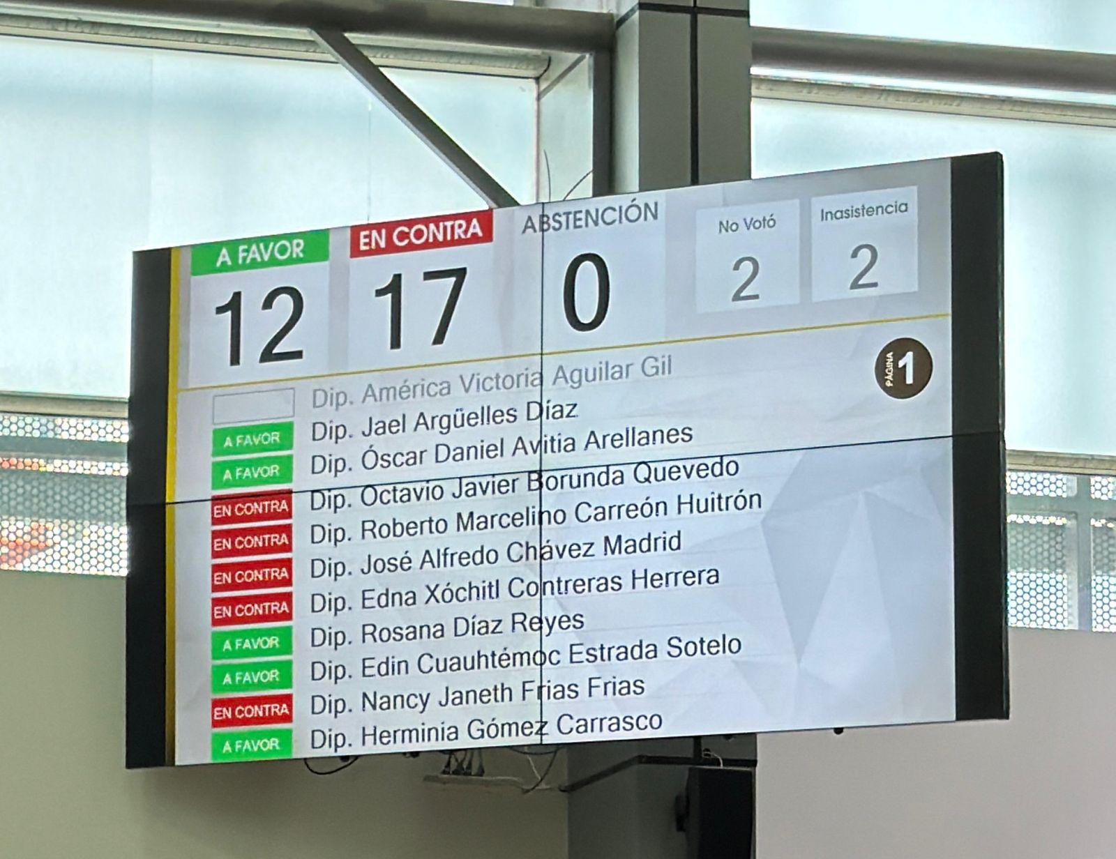 Sin embargo, la moción fue desechada tras no alcanzar la mayoría requerida en el Pleno, luego de registrarse 12 votos a favor, 17 en contra, 2 abstenciones y 2 inasistencias.