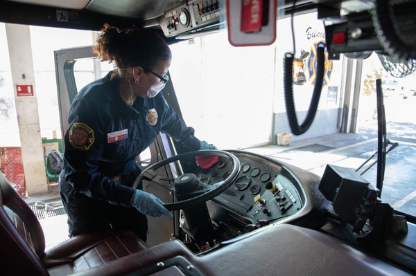 De manera diaria, durante los cambios de turno o después de atender un servicio, los mismos elementos sanitizan los asientos, volantes, puertas, radios, tabletas electrónicas y otros elementos que forman parte de las unidades y que tienen contacto con las manos de los apaga fuego y los agentes preventivos.