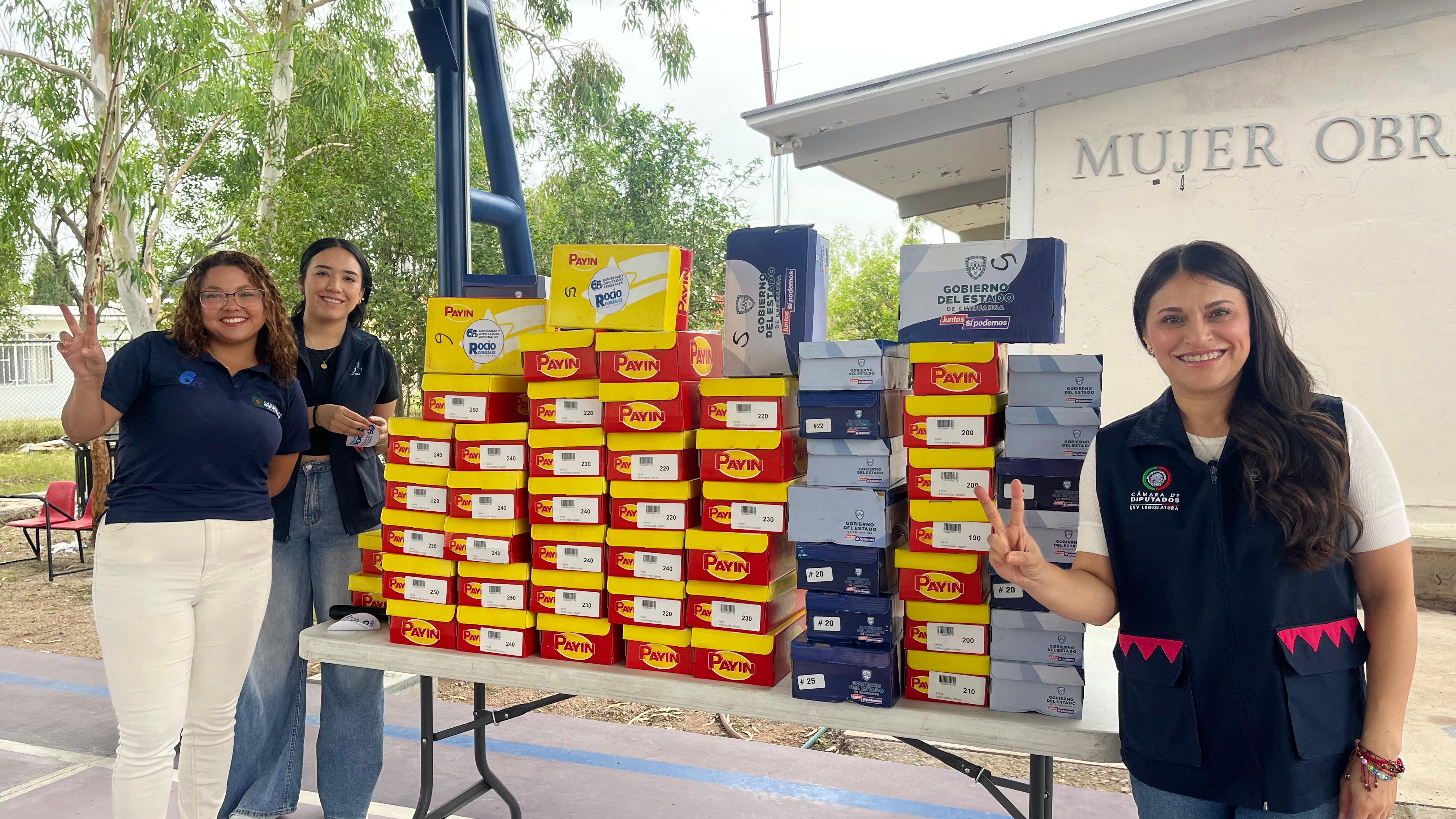 Chihuahua, Chih.- La diputada federal del Grupo Parlamentario de Acción Nacional, Carmen Rocío González Alonso, refrendó su compromiso con la educación y el bienestar de la niñez al gestionar recursos que permitieron la entrega de 94 pares de zapatos y tenis escolares a estudiantes de la Escuela Primaria Federal Mujer Obrera Josefa Ortiz Ortiz, ubicada en el municipio de Chihuahua.