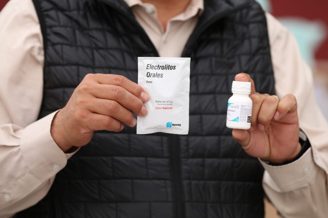 Rogelio Alejandro Pinal Castellanos, titular de Derechos Humanos, dijo que se recibieron aproximadamente 100 cajas con sobres de suero, cada una con 320 piezas.