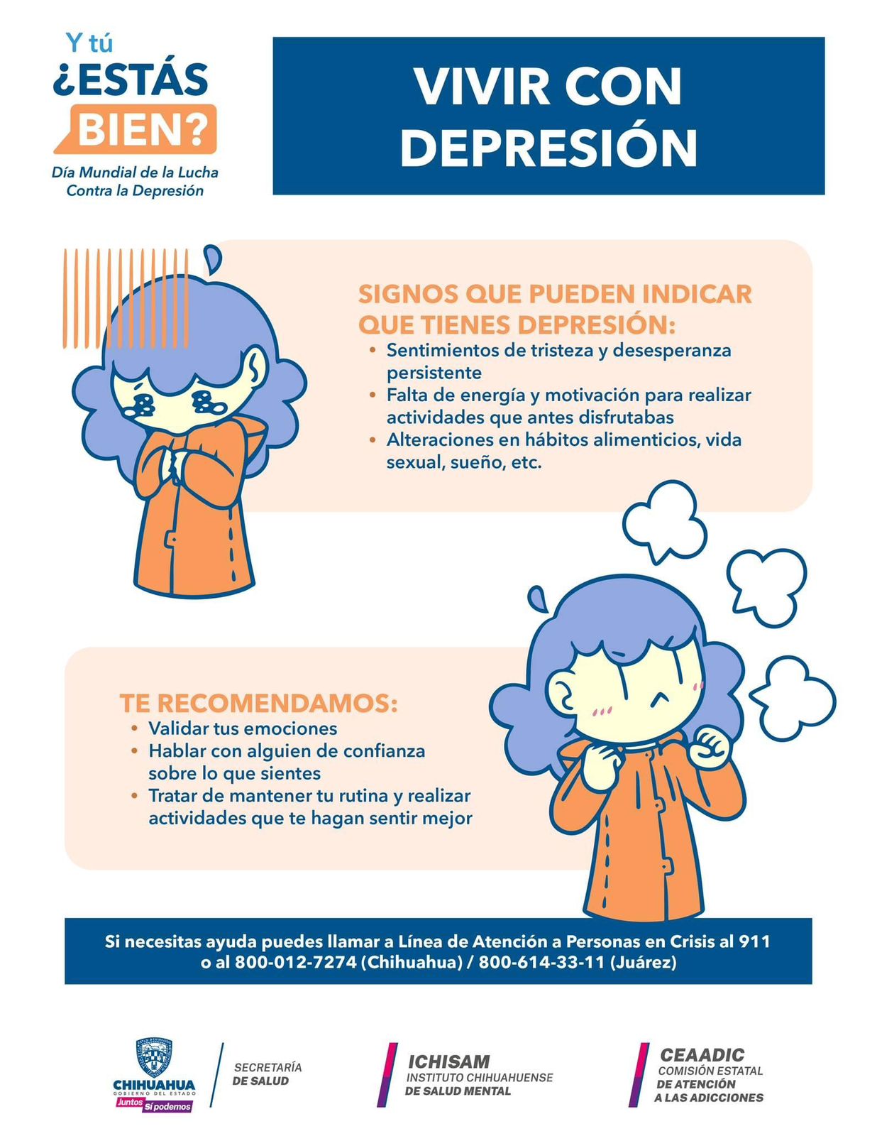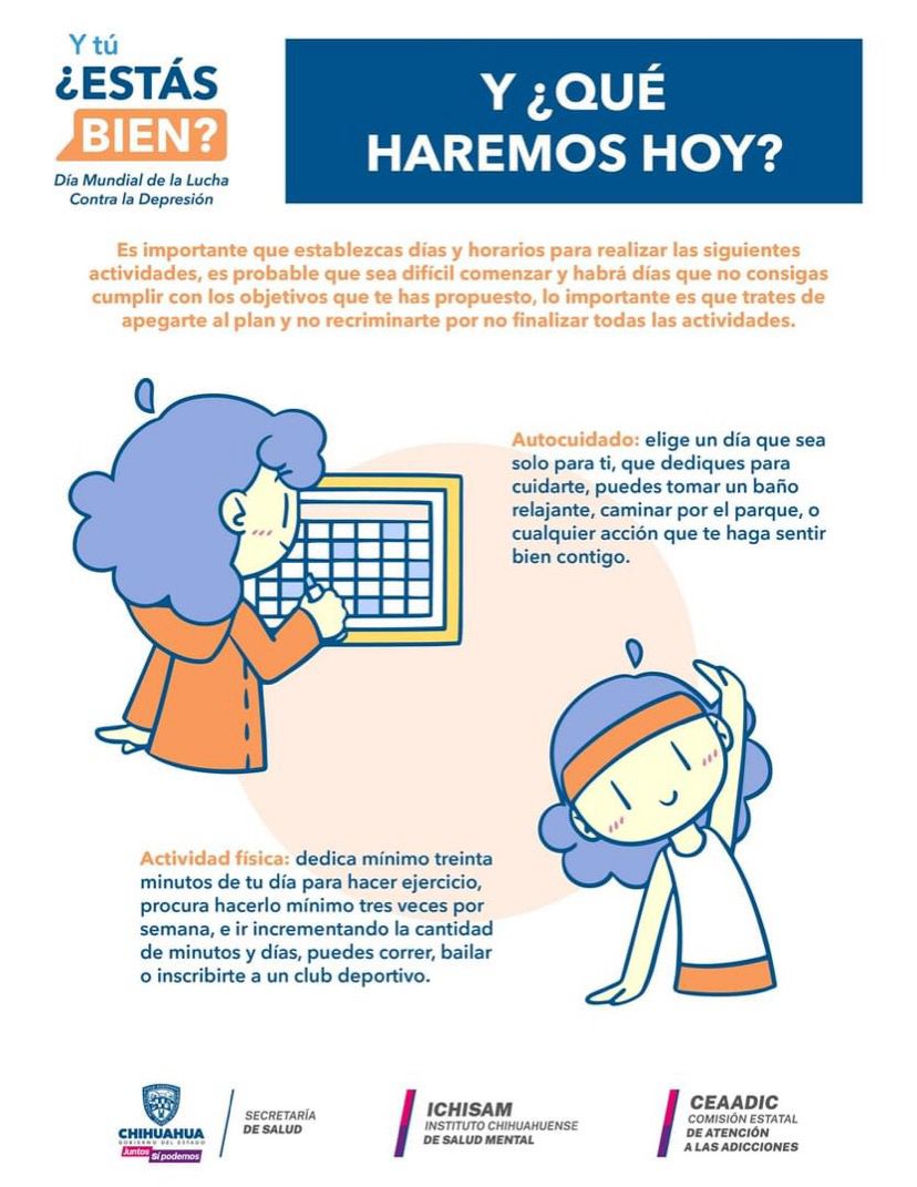 “Con el lema ‘¿Y tú? ¿Estás bien?’ conmemoramos el Día Mundial de la Lucha contra la Depresión, y esto es muy importante que se dé a conocer, ya que es un problema de salud mental que está afectando a millones de personas a nivel mundial, de acuerdo con los datos de la Organización Panamericana de la Salud”, puntualizó Salcido y recordó que la gente cuenta con servicios de apoyo.