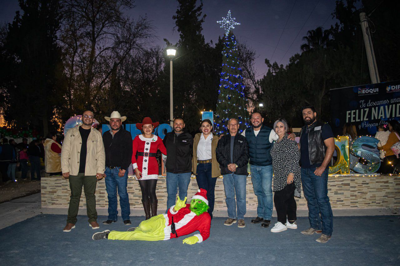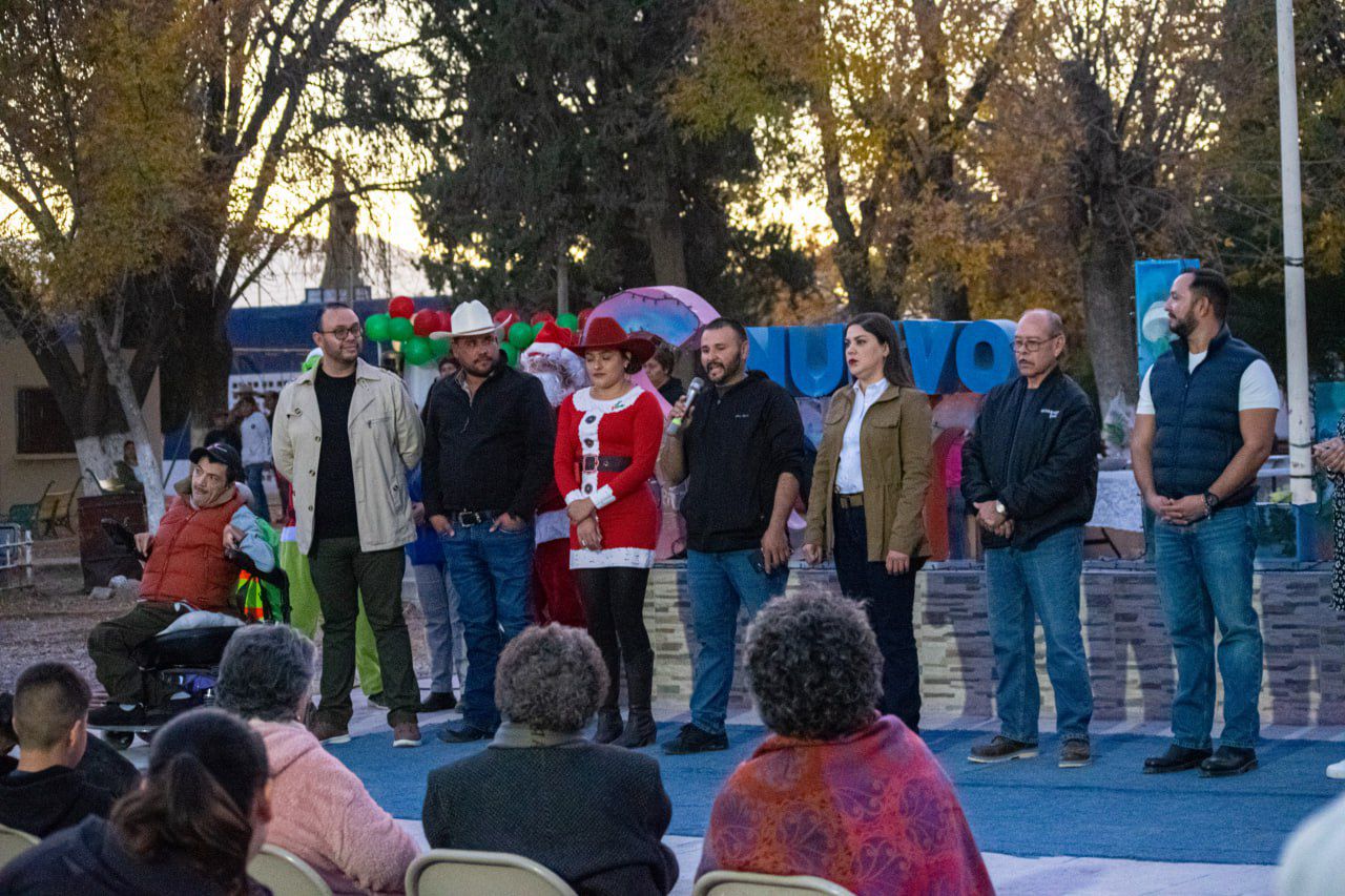 Meoqui.- En un ambiente de convivencia y unión familiar, la alcaldesa de Meoqui, Miriam Soto, encabezó la posada navideña y el encendido del pino en la comunidad de Nuevo San Lucas, siendo un evento realizado gracias a la suma de esfuerzos entre el DIF Municipal, el regidor Eddy Talamantes, el Ejido Meoqui, el Comité Pro Obras y los propios habitantes de la comunidad.