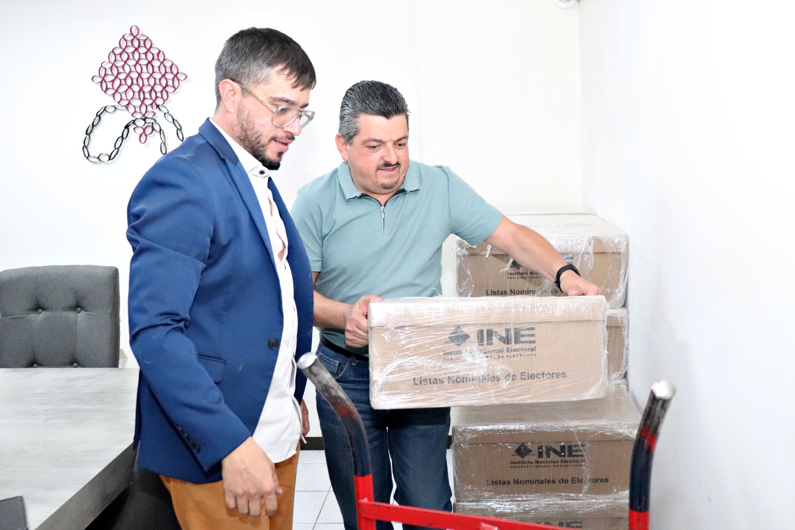 Alejandro de Jesús Scherman Leaño y Ramón Salazar Burgos, Vocal Ejecutivo y Vocal del Registro Federal de Electores de la Junta Local Ejecutiva del INE, formalizaron la entrega del material electoral para que se distribuya entre las personas Representantes de Casilla de los partidos políticos Pueblo y México Republicano Chihuahua.