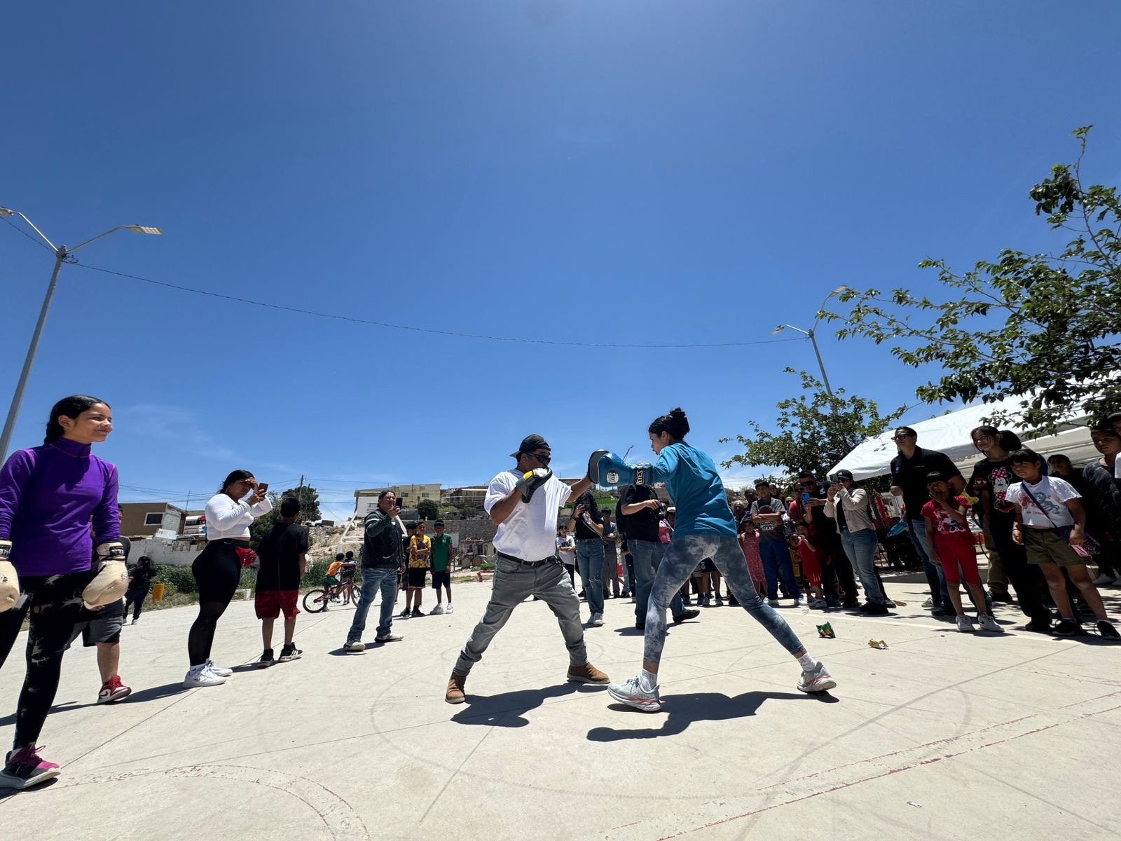 Chihuahua, Chih.- Como parte de la estrategia integral de prevención social contra la violencia, la Secretaría de Seguridad Pública del Estado (SSPE), a través de la Subsecretaría de Participación Ciudadana y Prevención del Delito, entregó este jueves 15 de mayo, equipo de box para Niñas, Niños y Adolescentes, en el Parque de la Presa, ubicado en la colonia Plutarco Elías Calles.