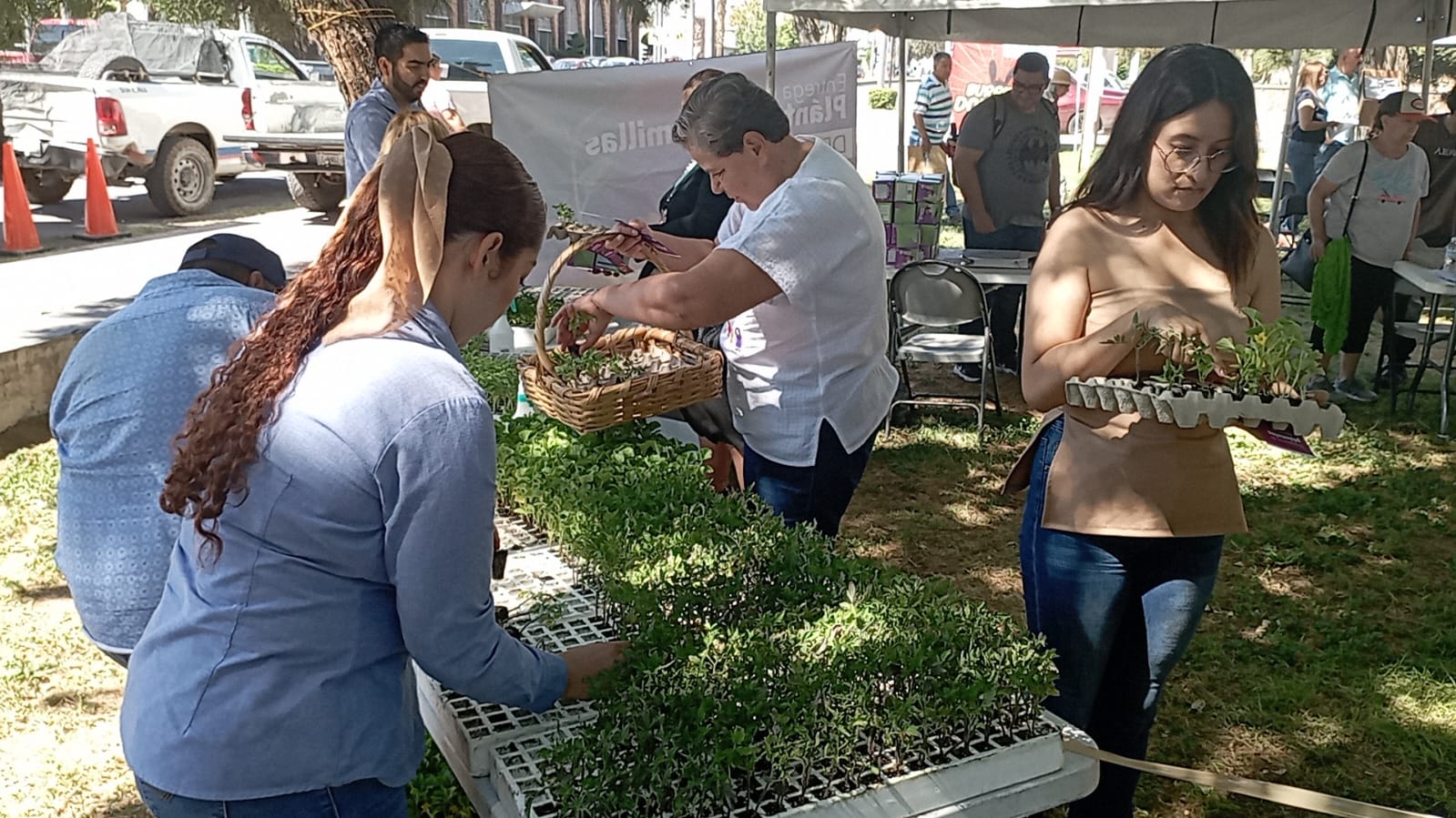 Chihuahua.- Plántulas para hortalizas y semillas son entregadas desde la mañana en el cruce de la avenida División del Norte y Gómez Morín, en la Ciudad Deportiva, esto como parte de la segunda etapa del plan de reforestación del Gobierno del Estado.