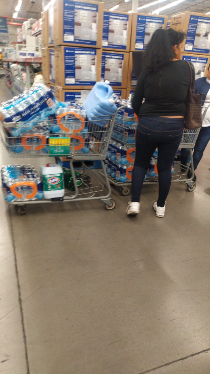 Tal es el caso de Sams, en la cual se pusieron observar clientes con “carritos” llenos, sobre todo de papel higiénico, galones de agua, alimentos enlatados y mercancía de limpieza.