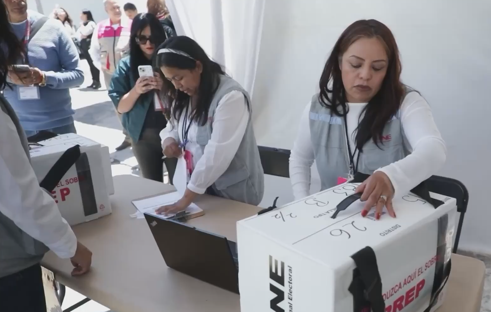 “En instalaciones del INE, como este Consejo Distrital, miles de funcionarias y funcionarios, así como la ciudadanía en todo el país, trabajan en este momento para dar certeza y máxima publicidad a los votos recibidos”, expresó.