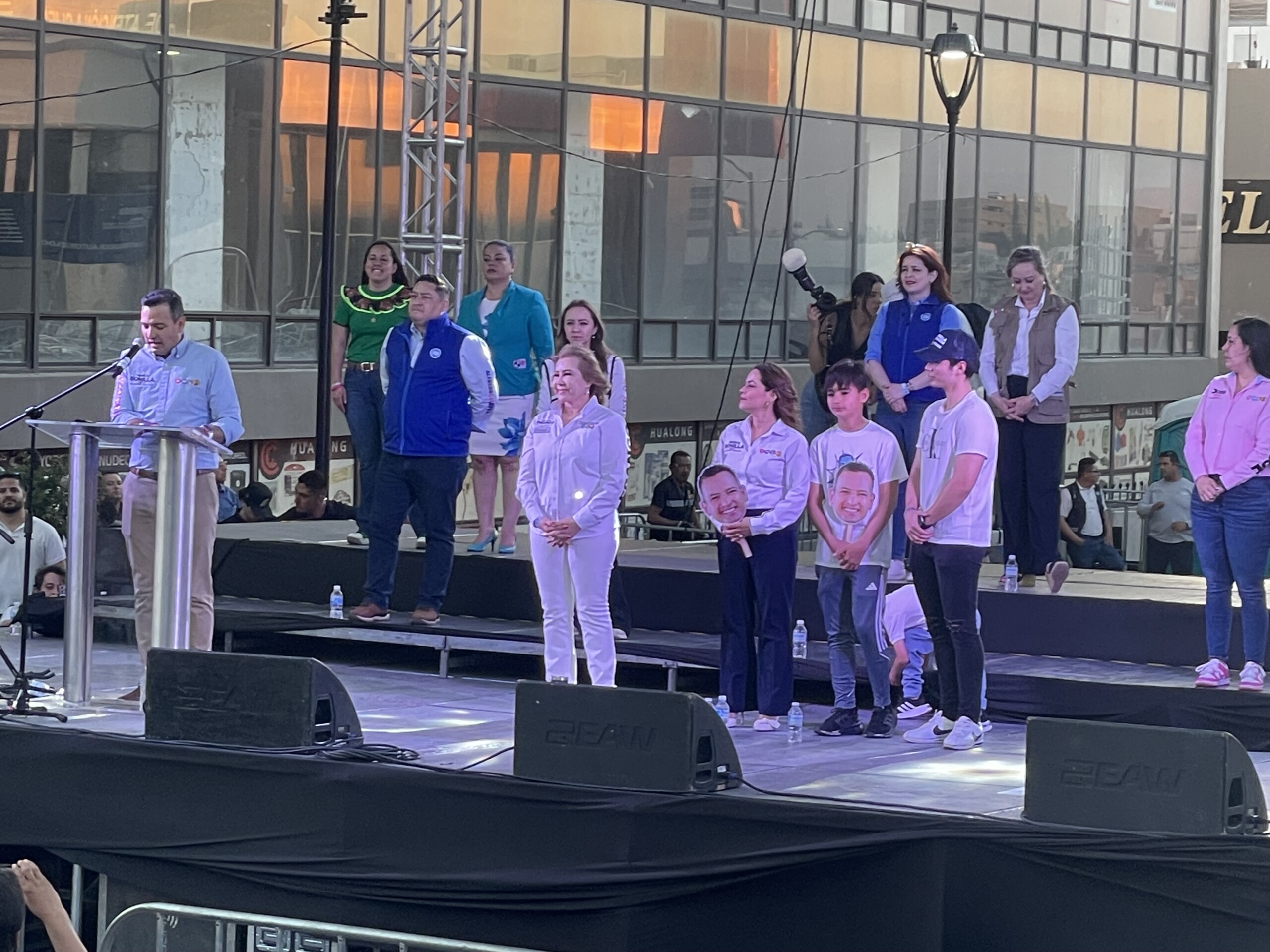 Fue junto con los candidatos a diputados locales, Joss Vega por el distrito 15, Alfredo Chávez el 18, Nancy Frías por el 12 y Carla Rivas por el 16, asila candidata a la sindicatura Olivia Franco, donde se presentaron en la Plaza de Armas con la intención de buscar el voto de las y los chihuahuenses.