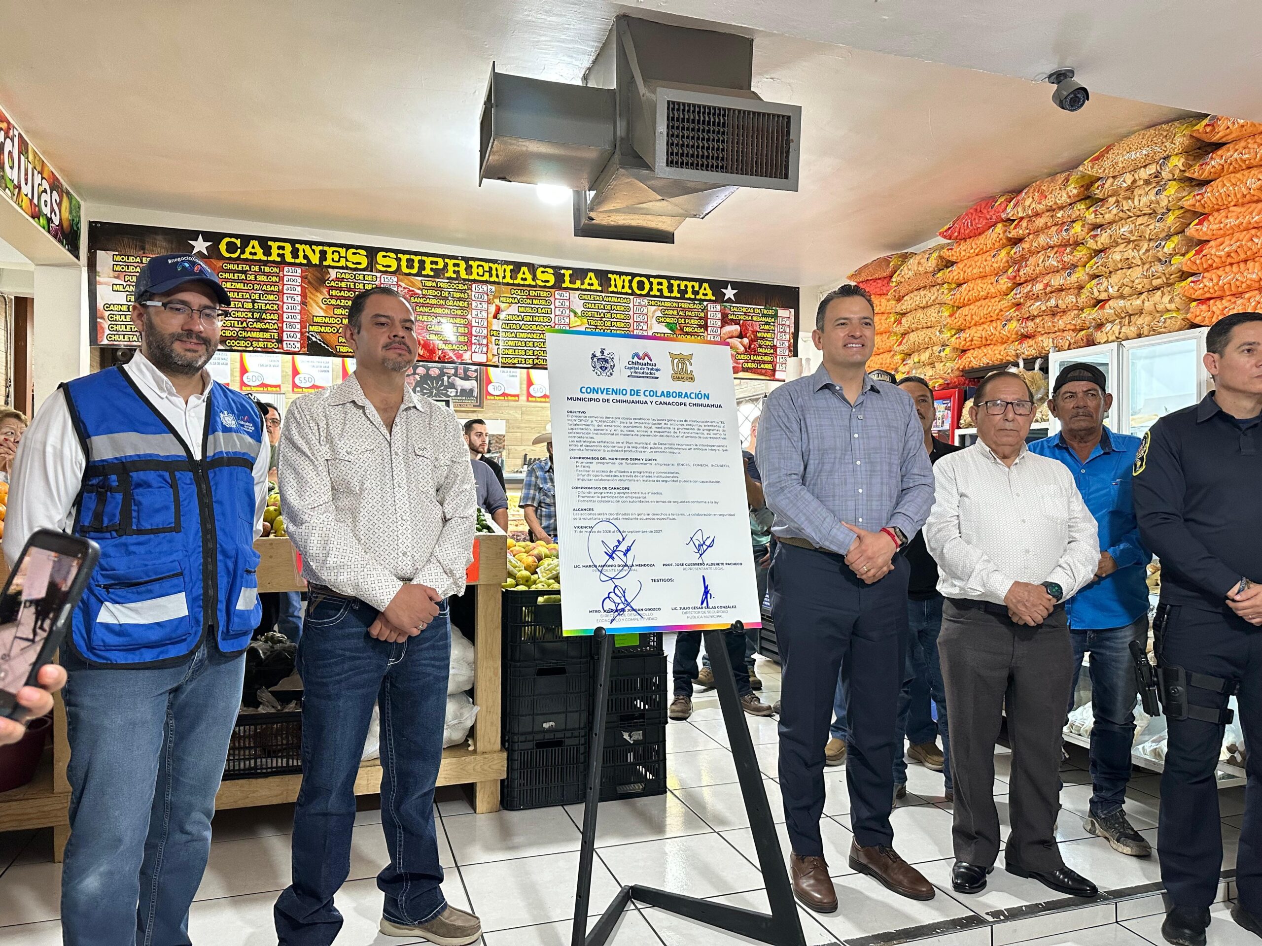 Chihuahua.- El alcalde Marco Bonilla, formalizó una alianza estratégica con la Cámara Nacional de Comercio en Pequeño, Servicios y Turismo (CANACOPE), para fortalecer el ecosistema emprendedor y comercial, ya que afiliados a esta Cámara, podrán participar activamente en programas como FOMECH, Vende tu Proyecto y ENCES.