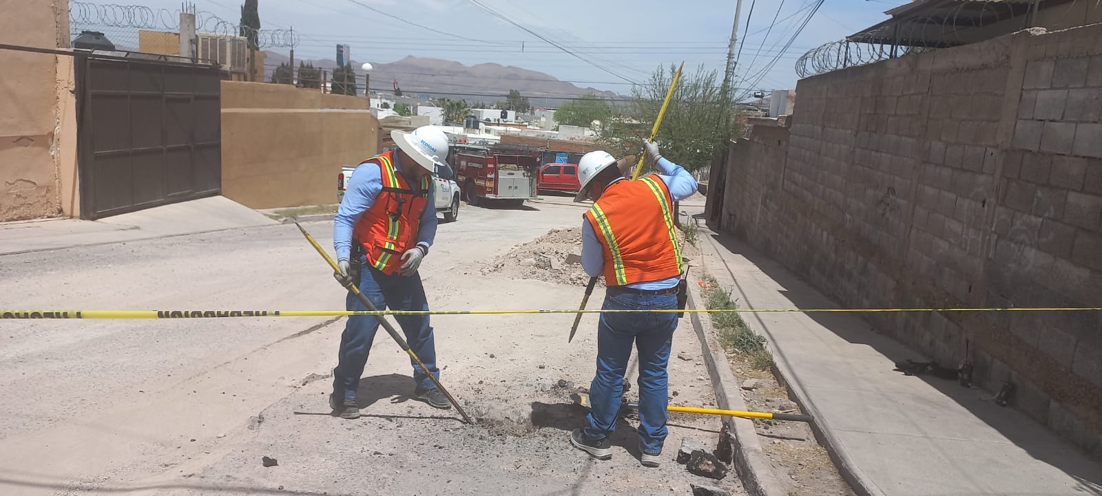 Chihuahua.- Esta tarde se registró una fuga de gas natural en una línea de dos pulgadas en la colonia Paseos de Chihuahua, debido a que empleados externos de la Junta Municipal de Agua y Saneamiento realizaban una excavación con una máquina retroexcavadora y perforaron por error en una de las líneas principales que abastecen del combustible al sector.