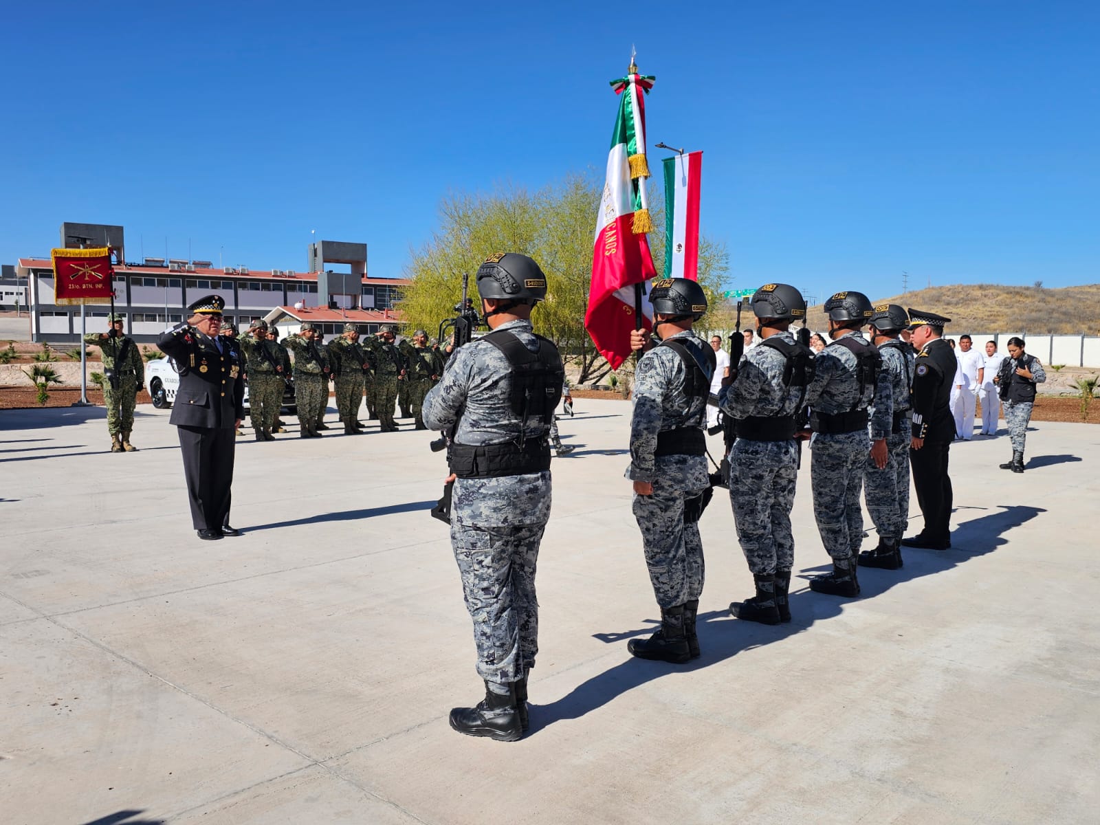 La ceremonia de relevo se realizará en el cuartel de la corporación ubicado en la colonia Zootecnia, con la presencia de autoridades de seguridad de los tres niveles de gobierno. Se prevé la asistencia de la gobernadora María Eugenia Campos Galván; el fiscal general del estado, César Jáuregui Moreno; el secretario de Seguridad Pública Estatal, Gilberto Loya Chávez; y el general Felipe González Moreno.