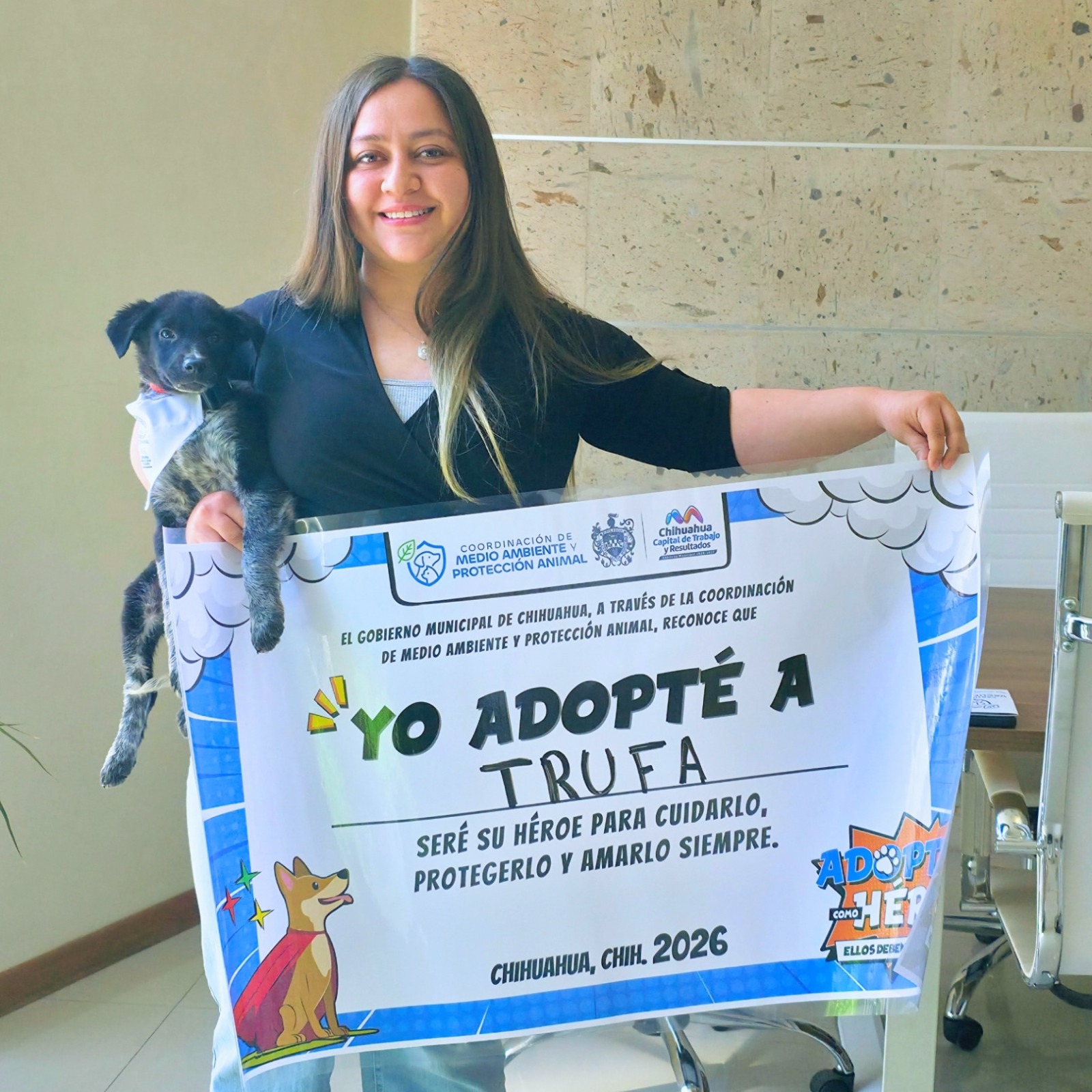 Chihuahua, Chih.- El Gobierno Municipal, a través de la Coordinación de Medio Ambiente y Protección Animal, mantiene activo su programa permanente de adopciones responsables, con el objetivo de fomentar el cuidado adecuado de los animales de compañía.