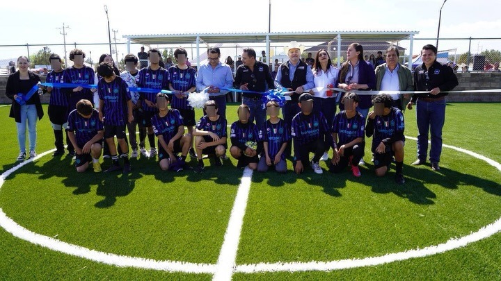 Bachíniva. -El senador por Chihuahua, Mario Vázquez Robles, encabezó la inauguración de la rehabilitación de la cancha de fútbol rápido, un espacio que ahora cuenta con pasto sintético para beneficio de niñas, niños y jóvenes del municipio.