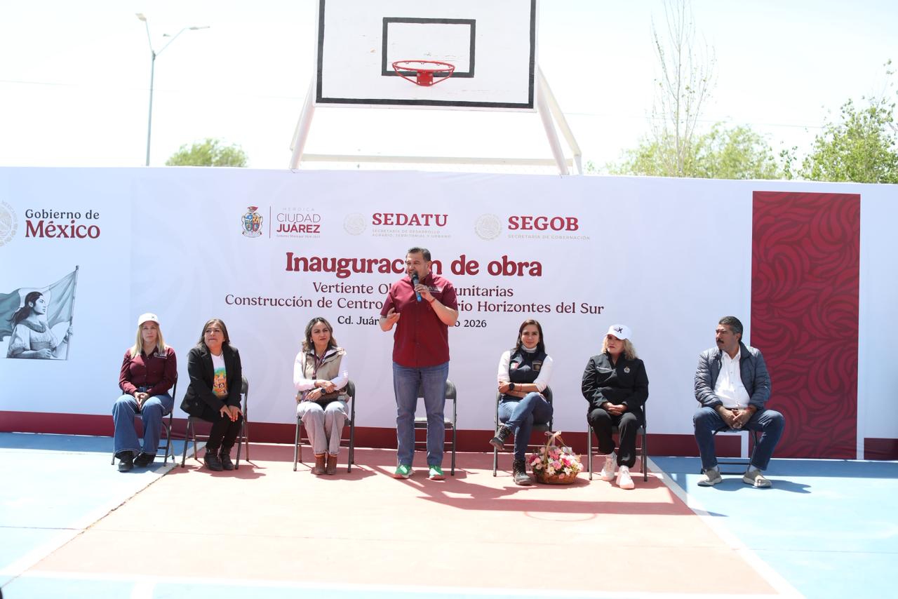 Juárez.- El alcalde Cruz Pérez Cuéllar inauguró la obra que albergará el centro comunitario en Horizontes del Sur, un espacio que beneficiará de manera directa a las familias del sector.