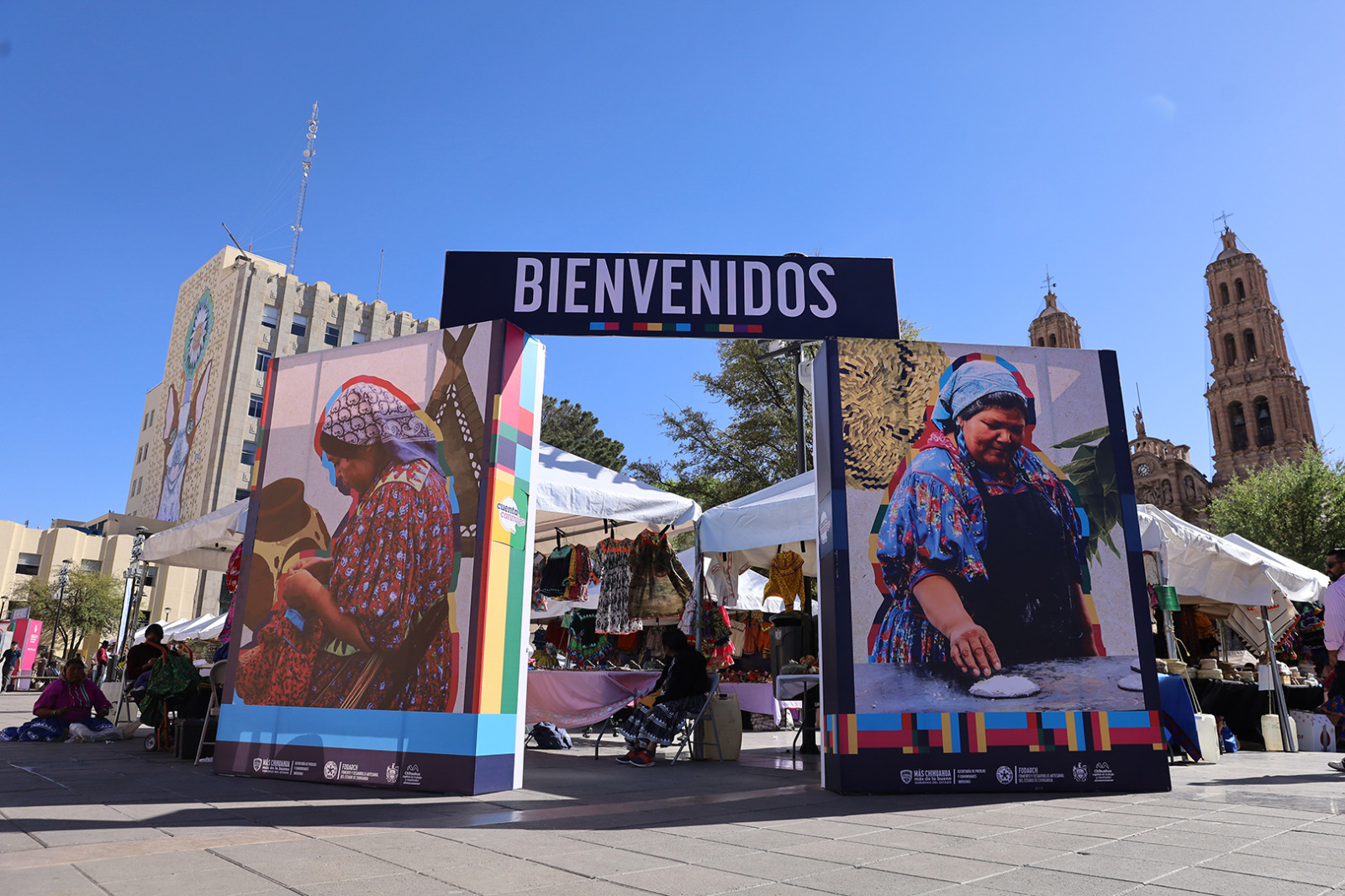 Chihuahua, Chih.- Con el objetivo de visibilizar y fortalecer la riqueza cultural de los pueblos originarios, la Secretaría de Pueblos y Comunidades Indígenas (SPyCI), en coordinación con Fomento y Desarrollo Artesanal del Estado de Chihuahua (FODARCH), inauguró el encuentro cultural Sekáti Newárame en la Plaza de Armas.
