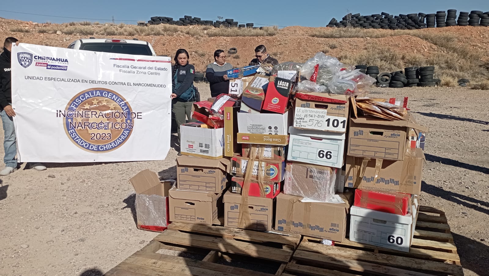 Chihuahua.- La Unidad Especializada contra el Delito de Narcomenudeo de la Fiscalía General del Estado llevó a cabo la incineración de 36 kilos de droga dentro de las que destacan marihuana, cristal, heroína y cocaína.