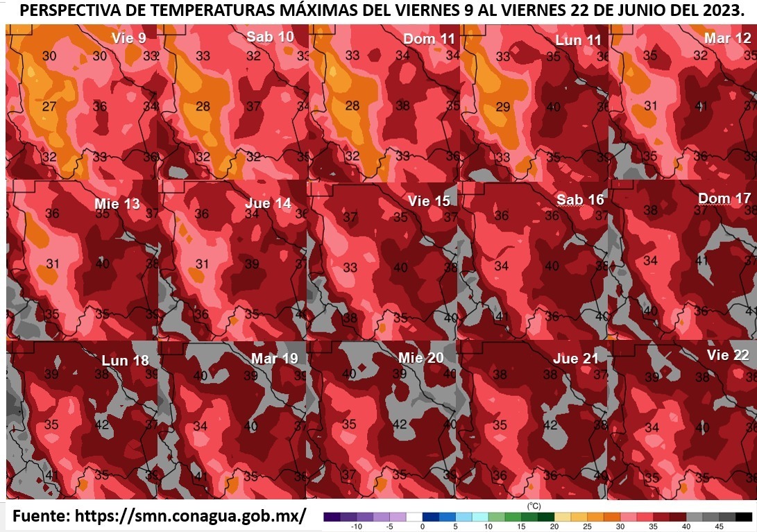 La próxima semana continuaran las temperaturas calurosas en toda la entidad; Ojinaga puede a los 41 y 42°C, Chihuahua entre 37 y 39°C, y Juárez entre 38 y 40°C.