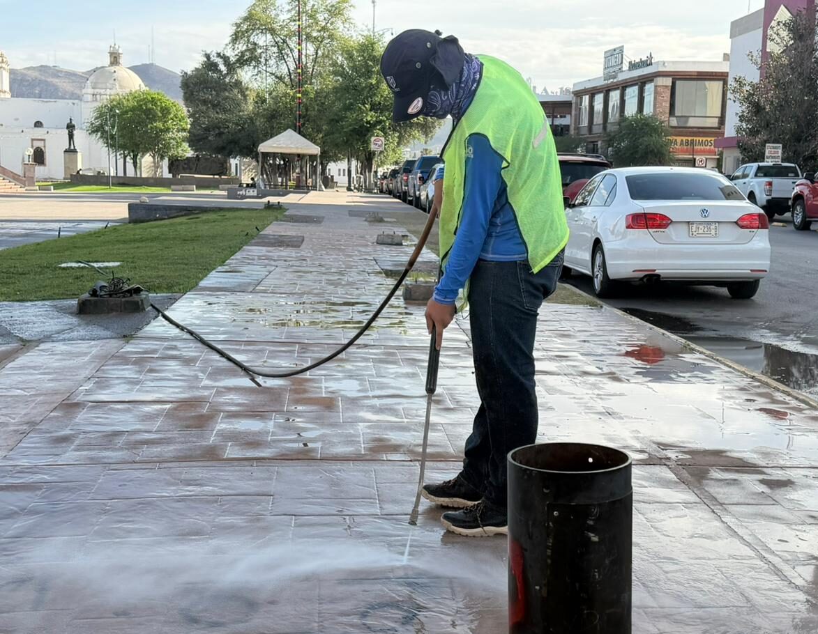 Explicaron que el proceso de limpieza consiste en la aplicación de un químico especial sobre las pintas, el cual permite desprender la pintura, para posteriormente utilizar equipo de agua a presión con el fin de retirar los residuos.