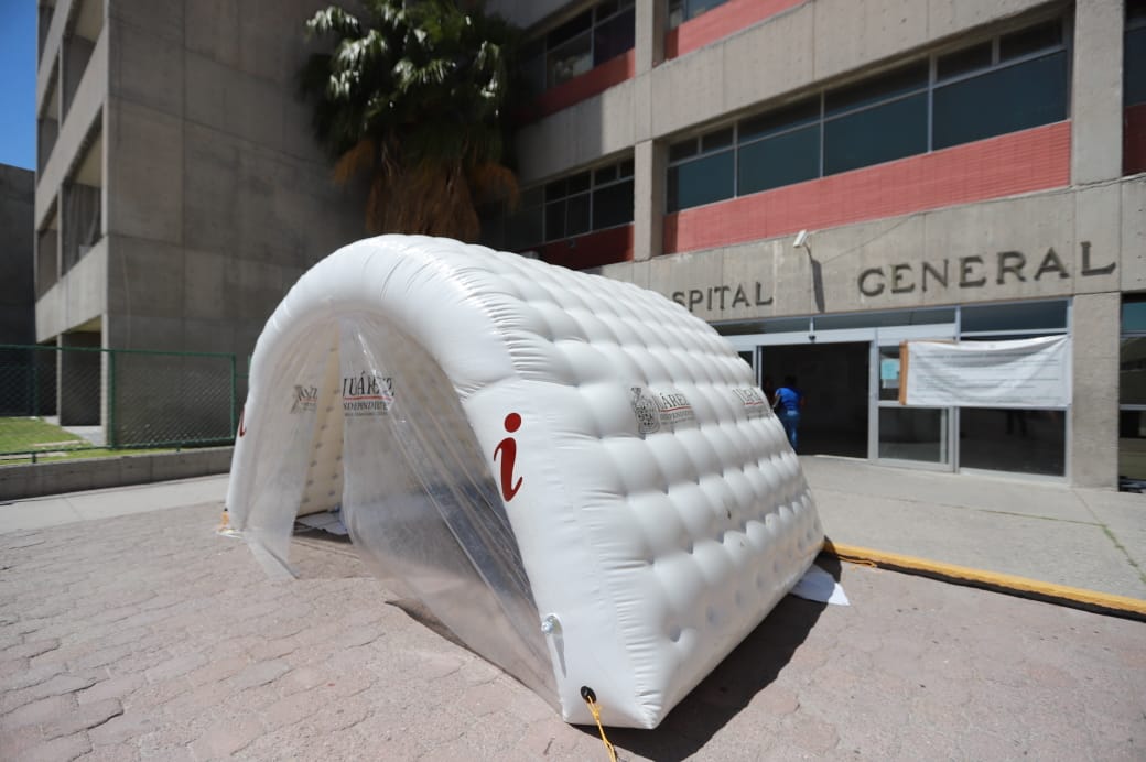 Por instrucciones del Presidente Municipal Armando Cabada Alvídrez, esta mañana fue instalado un túnel sanitizante en el acceso principal de la Clínica no. 35 del Instituto Mexicano del Seguro Social.