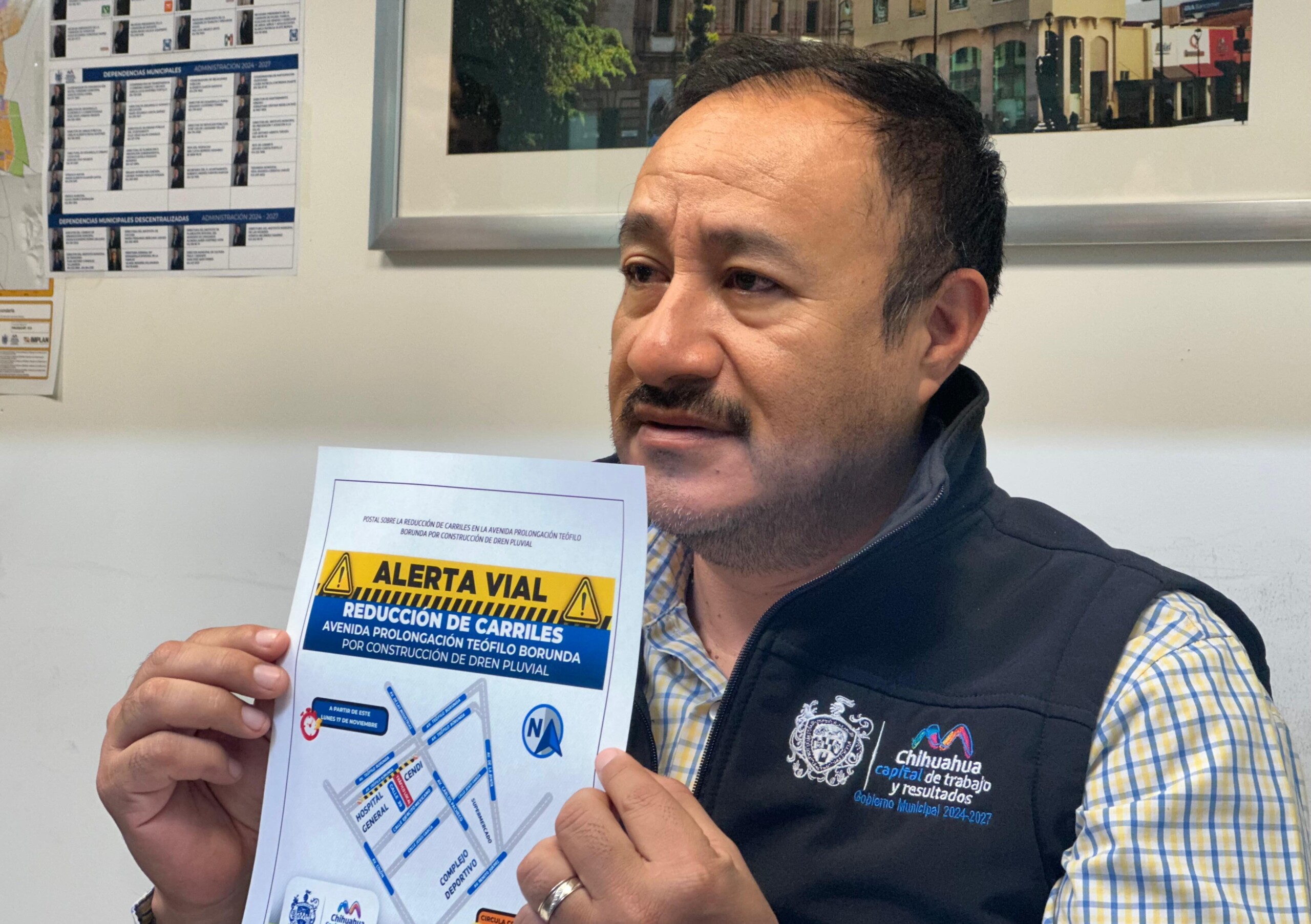 Chihuahua.- El director de Obras Públicas Municipales, Carlos Rivas Martínez, dio a conocer que a partir de este lunes 17 de noviembre comenzarán labores en la avenida Prolongación Teófilo Borunda a la altura del Hospital General de Chihuahua “Dr. Salvador Zubirán Anchondo” hacia la avenida Carlos Pacheco.