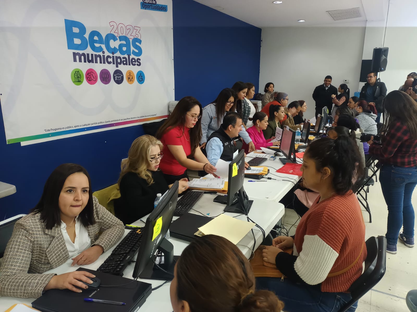 Chihuahua.- La recepción de documentos del programa de Becas de Formación, fue visitada este jueves por el alcalde Marco Bonilla, en las instalaciones de la Comandancia Sur, en donde decenas de chihuahuenses esperaron su turno para entregar la documentación.
