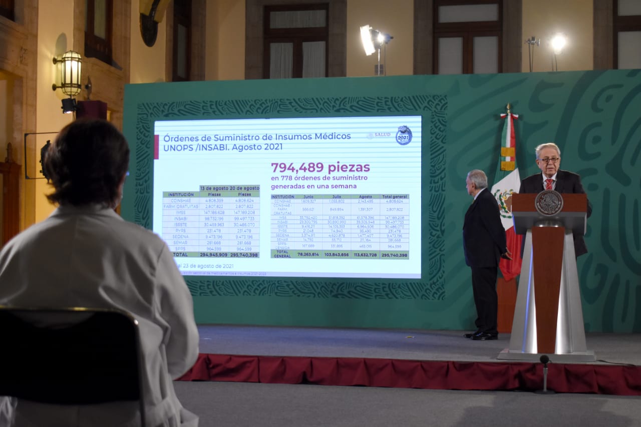 Recordó que la demanda inicial del sector Salud incluyó mil 840 claves, que equivalen a 390 millones 765 mil 701 piezas de medicamentos e insumos.