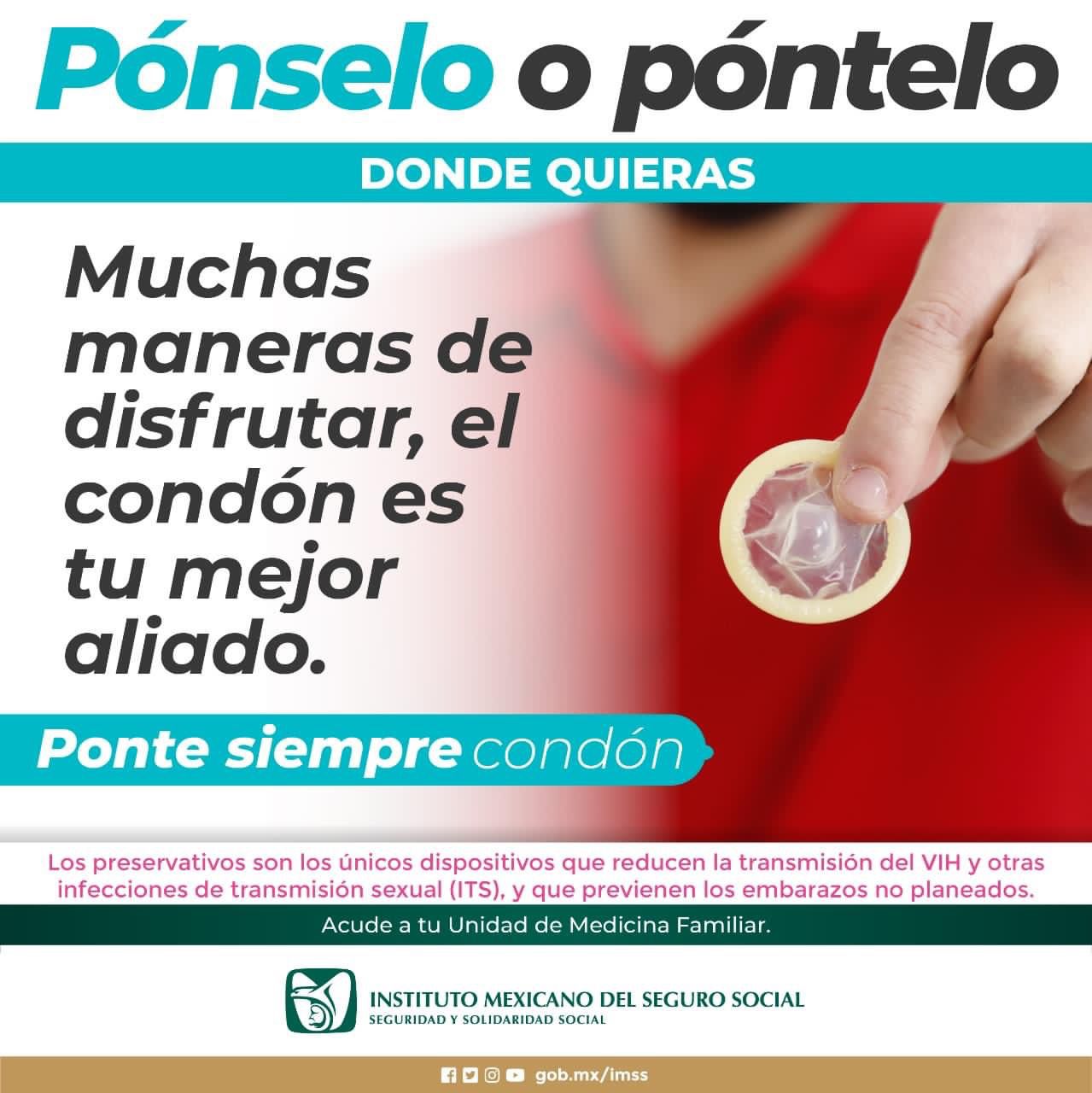 En los módulos de PrevenIMSS, Módulos de Apoyo a la Prestación de Servicios (MAPS) y Consultorios de Planificación Familiar de las Unidades de Medicina Familiar (UMF), se cuenta con la dotación de condones masculinos y femeninos, que se otorgan a los derechohabientes y no derechohabientes que así lo soliciten.