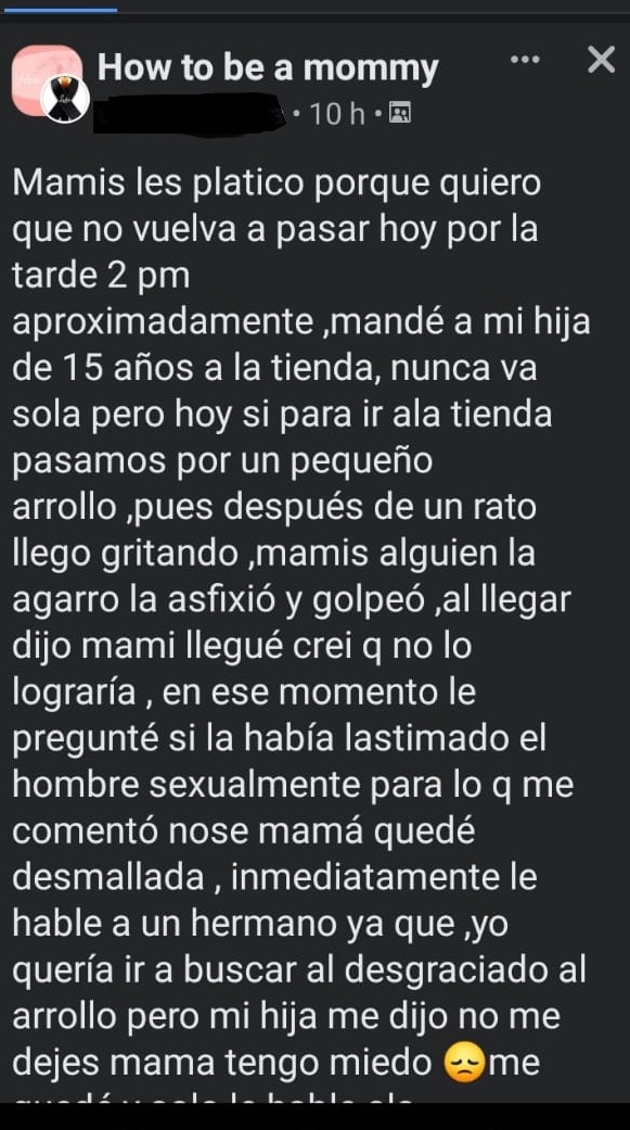 Así mismo, familiares y vecinos trataron de localizar al agresor sin éxito por lo que la mujer alertó a otros padres de familia a estar pendientes pues se cree que el agresor sigue cerca del sector.