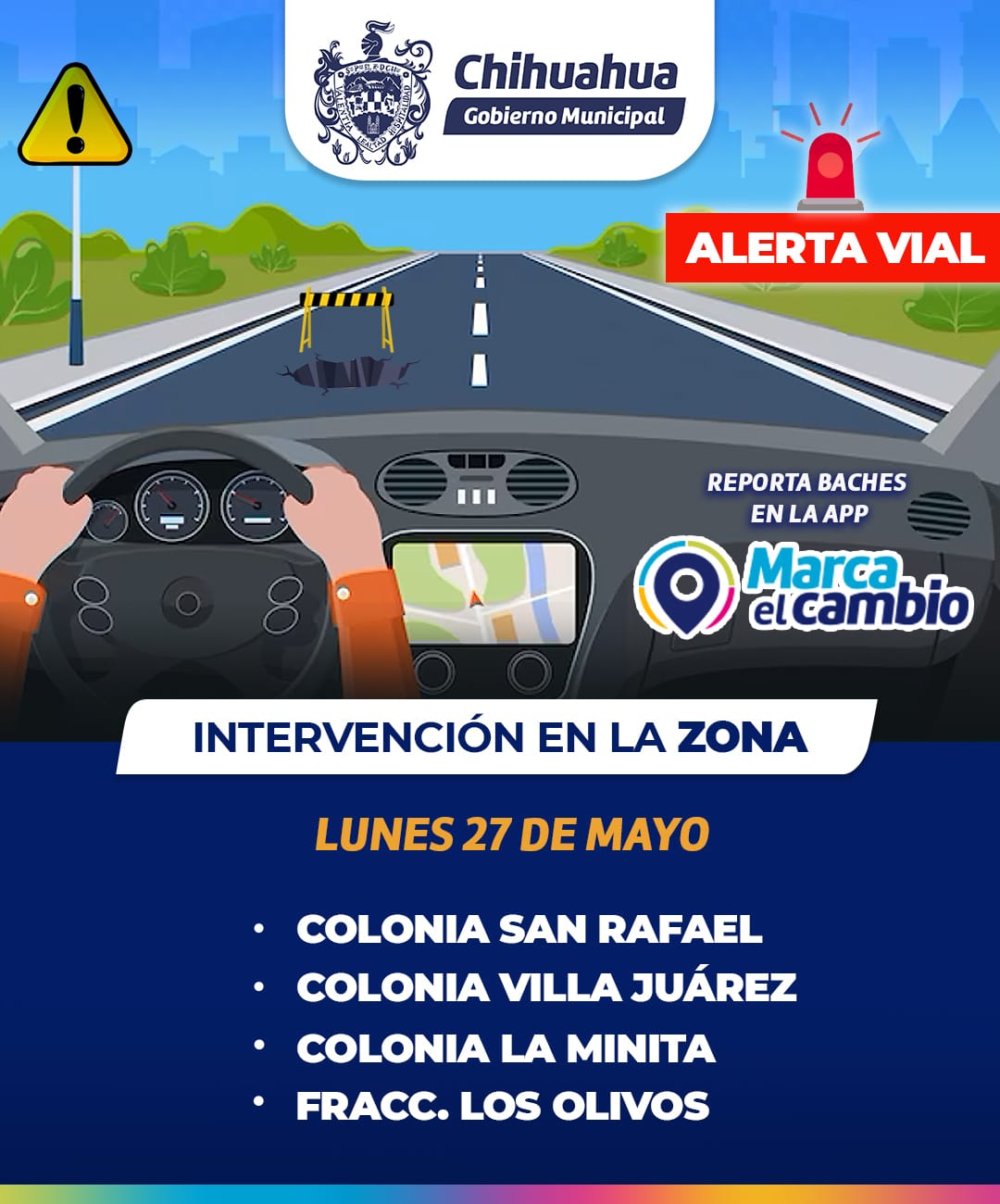 Asimismo, se recuerda que pueden levantar sus reportes o denuncias en el Centro de Respuesta Ciudadana (CRC) marcando al 072 o en la aplicación Marca el Cambio.